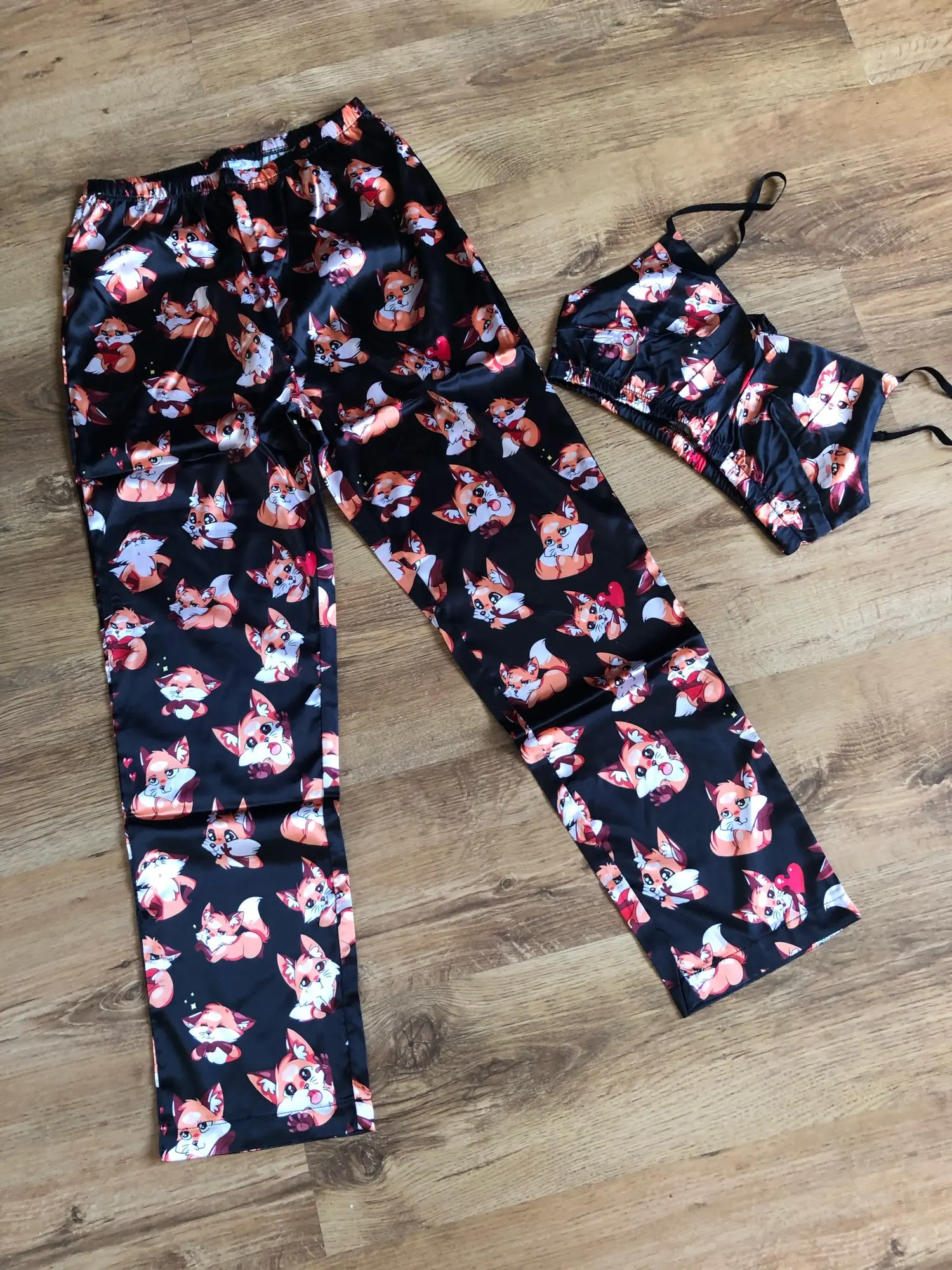 Пижама женская атласная из двух предметов, с V-образным вырезом и принтом