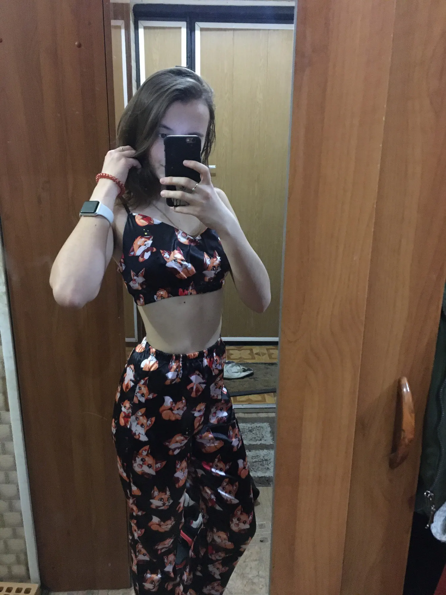 Пижамка очень клёвая, качество хорошее, особенно за такие деньги. Мои параметры 82-61-91 взяла размер S, подошёл в самый раз. ВАЖНО, пижамка на низких девушек, я 161 см, подошло впритык, если вы выше, готовьтесь к тому, что низ будет коротковат.