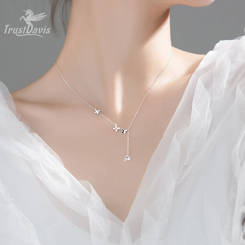 Trustdavis колье из подлинного стерлингового серебра 925 пробы с кисточкой Короткое ожерелье с подвеской для женщин Свадебное Ожерелье S925 ювелирные изделия DA1156
