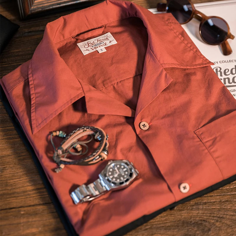 Красные мужские рубашки Tornado с кубинским воротником, Простые ретро футболки с короткими рукавами, облегающая футболка Boxy