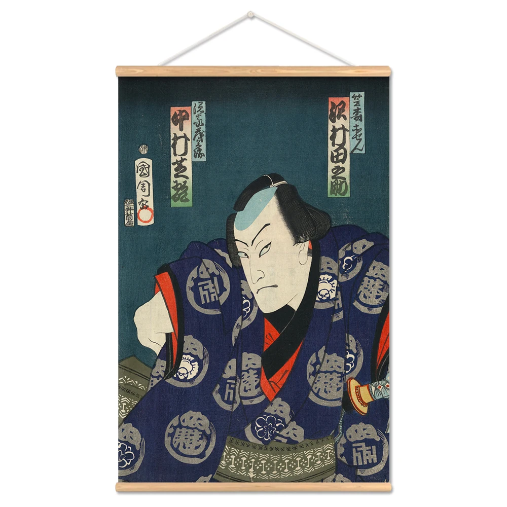 Японский постер-свиток самурая укийое и принты с деревянной вешалко...