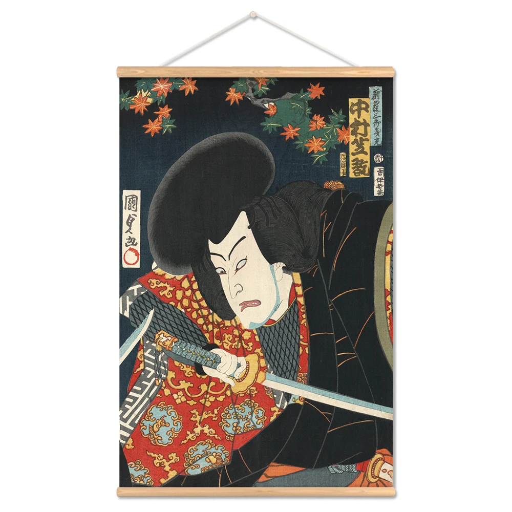 Японский офицер укийоу, Свиток, Картина на холсте, настенное искусство для гостиной, винтажный постер-свиток с персонажами с деревянной вешалкой