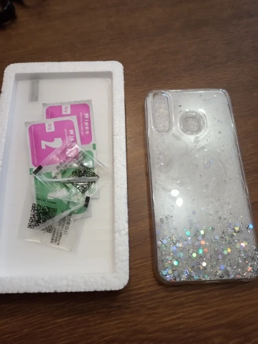 описание полное, чехол симпатичный, переливается, изготовлен добавлением блёсток в силикон, все ровненько, ничего не торчит, все технологические отверстия чехла совпали с телефоном. С продавцом не общались т.к. небыло необходимости, заказ пришел за месяц, забрала в постомате.