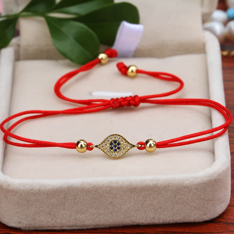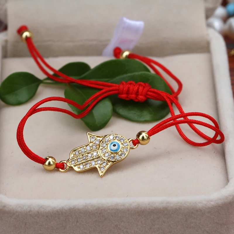 Турецкий браслет для глаз, регулируемая красная нить, кубический микроциркон, турецкий глаз, ладонь судьбы, Каббала, Женскаяженская нить