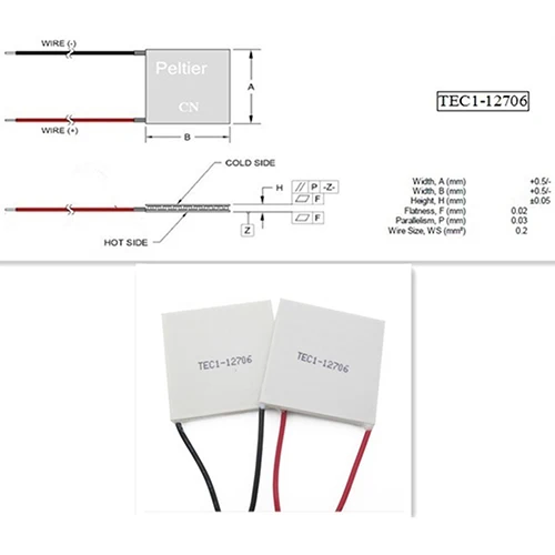 TEC1-12706 Термоэлектрический охладитель Пельтье 40*40 мм полномощный полупроводниковый охлаждающий чип 12 В/60 Вт высокомощный охладитель