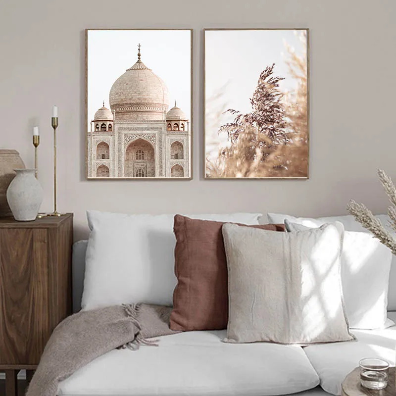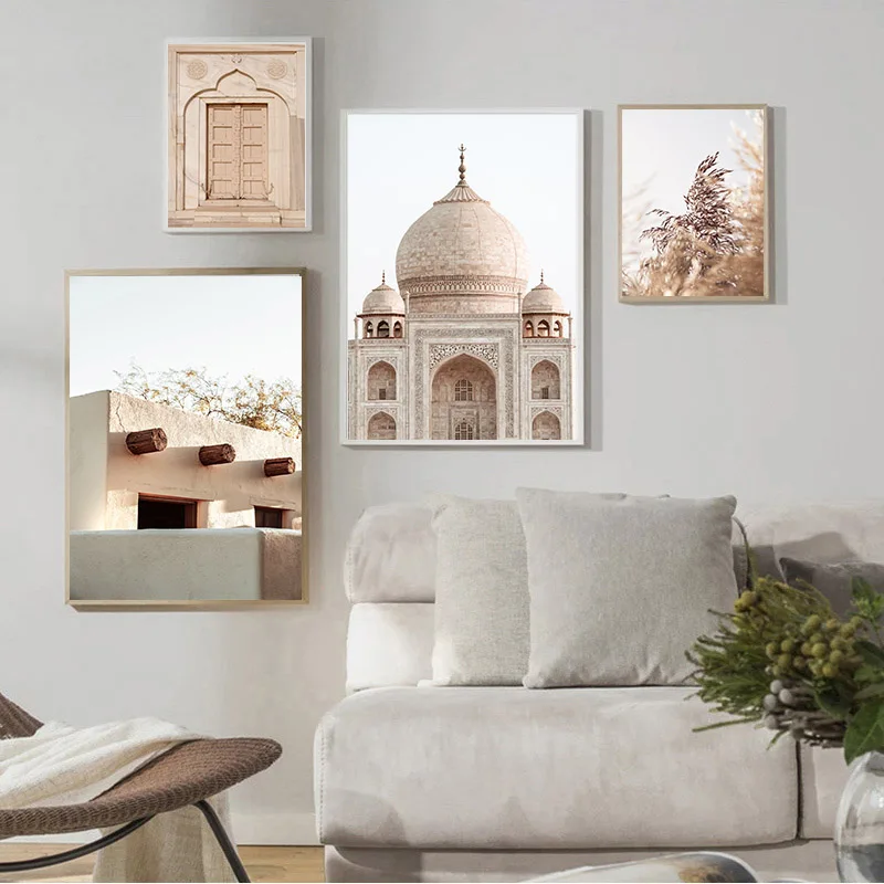 Настенная Картина на холсте в исламском стиле с изображением листьев растений, пляжа, архитектурная картина, скандинавский дорожный пейзаж, ВИНТАЖНЫЙ ПЛАКАТ, домашний декор