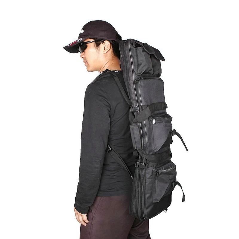 Изготовлен из водонепроницаемого нейлона высокой плотности Двойного назначения, с двойным плечевым мягким подвесным ремешком и ремешком для переноски, также с плечевым ремнем 2 основных отделения, 4 небольших отделения для журналов или других аксессуаров, 1 большое отделение на молнии на задней стороне. С удобным двойным плечевым проложенным ремнем, ручным ремнем и одним фиксирующим ремнем Большой основной отсек встроенный Расширенный чехол, используется для хранения винтовки, внешний отсек способен хранить пистолеты или пистолеты Толстая стеганая подушка предназначена для максимальной защиты, а также делает вас комфортно, когда вы носите его на спине Идеально подходит для охоты и всех военных целей
