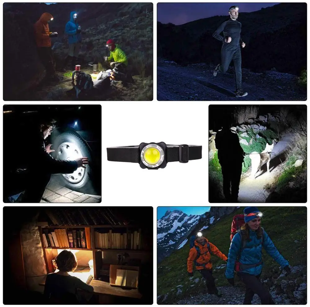 Светодиодный налобный фонарь, Перезаряжаемый USB, COB, светодиодный...