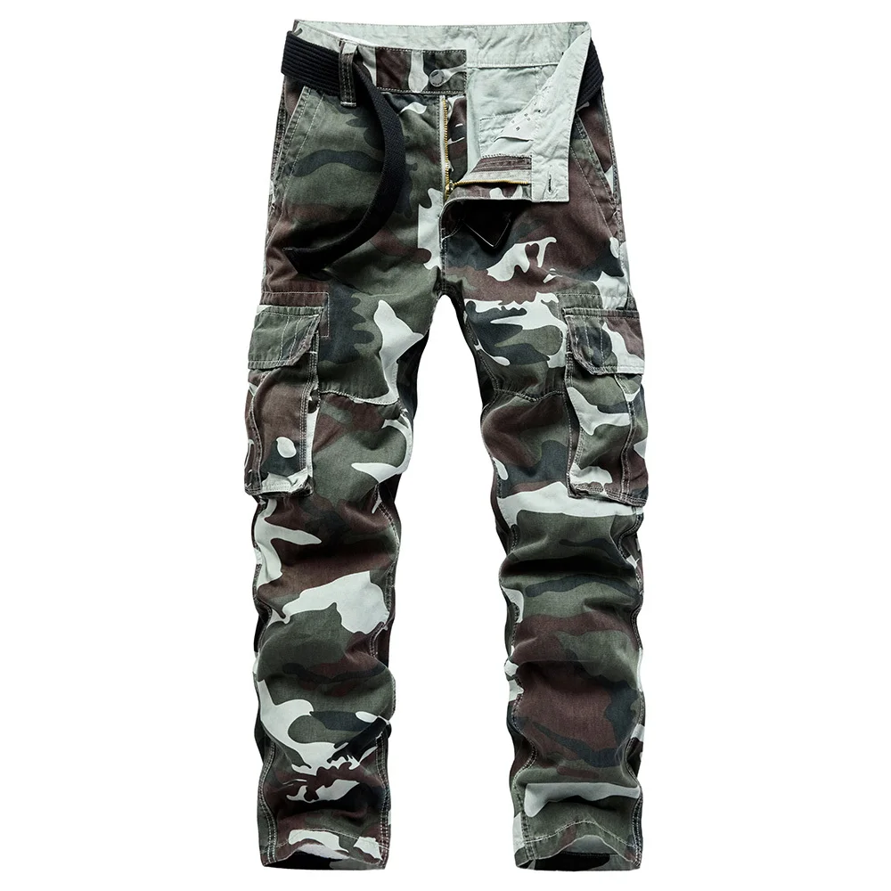 Мужские камуфляжные брюки-карго, повседневные мешковатые брюки-карго, хлопковые брюки с несколькими карманами для бега в уличном стиле