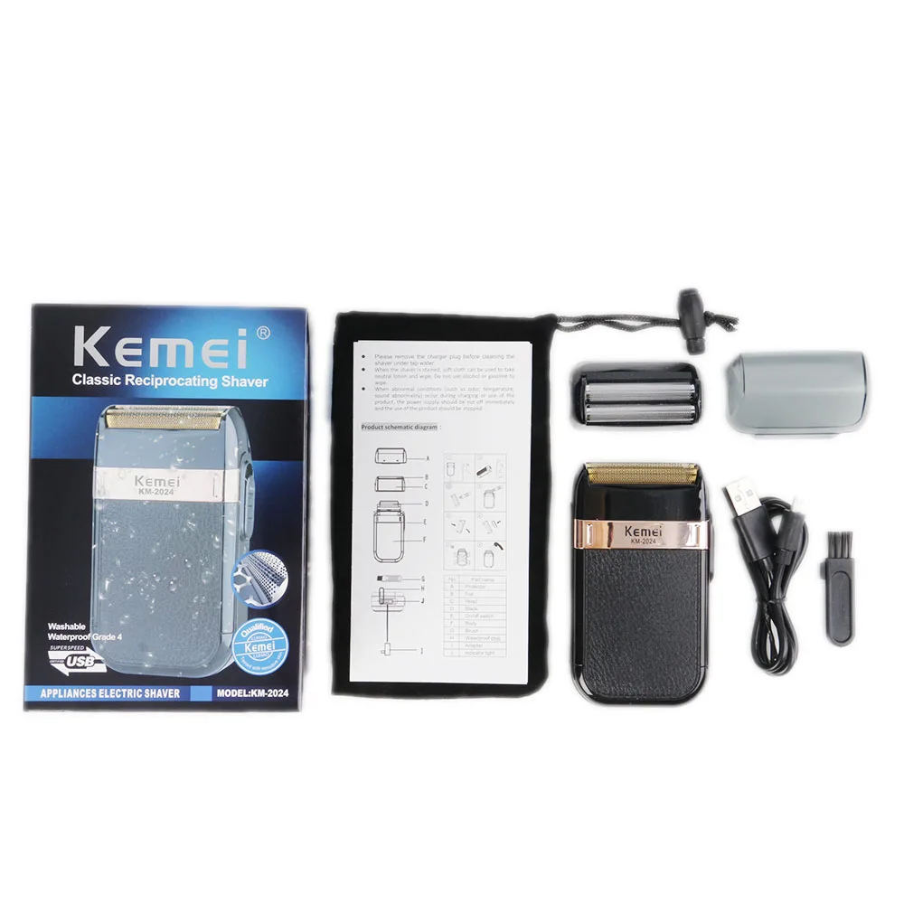 KM-2024 электробритва с двойным лезвием для мужчин, Водонепроницаемая беспроводная бритва с возвратно-поступательным движением, зарядка от USB, триммер для бритья, для парикмахеров