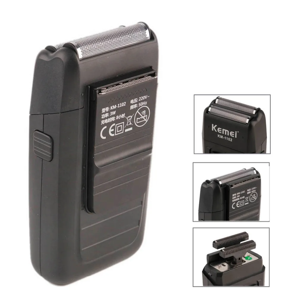 Тип питания: перезаряжаемый2 лезвияЛезвие Применение: уход за кожей лицаВремя использования: 45 минутРежим стирки: Чистящая ЩеткаС обрезным устройством: нетВремя зарядки: 8 чНапряжение:(110-240 В) 50 Гц/60 ГцНомер модели: km-1102Мощность: 5 ВтЦвет: черныйМатериал: abs нержавеющая сталь