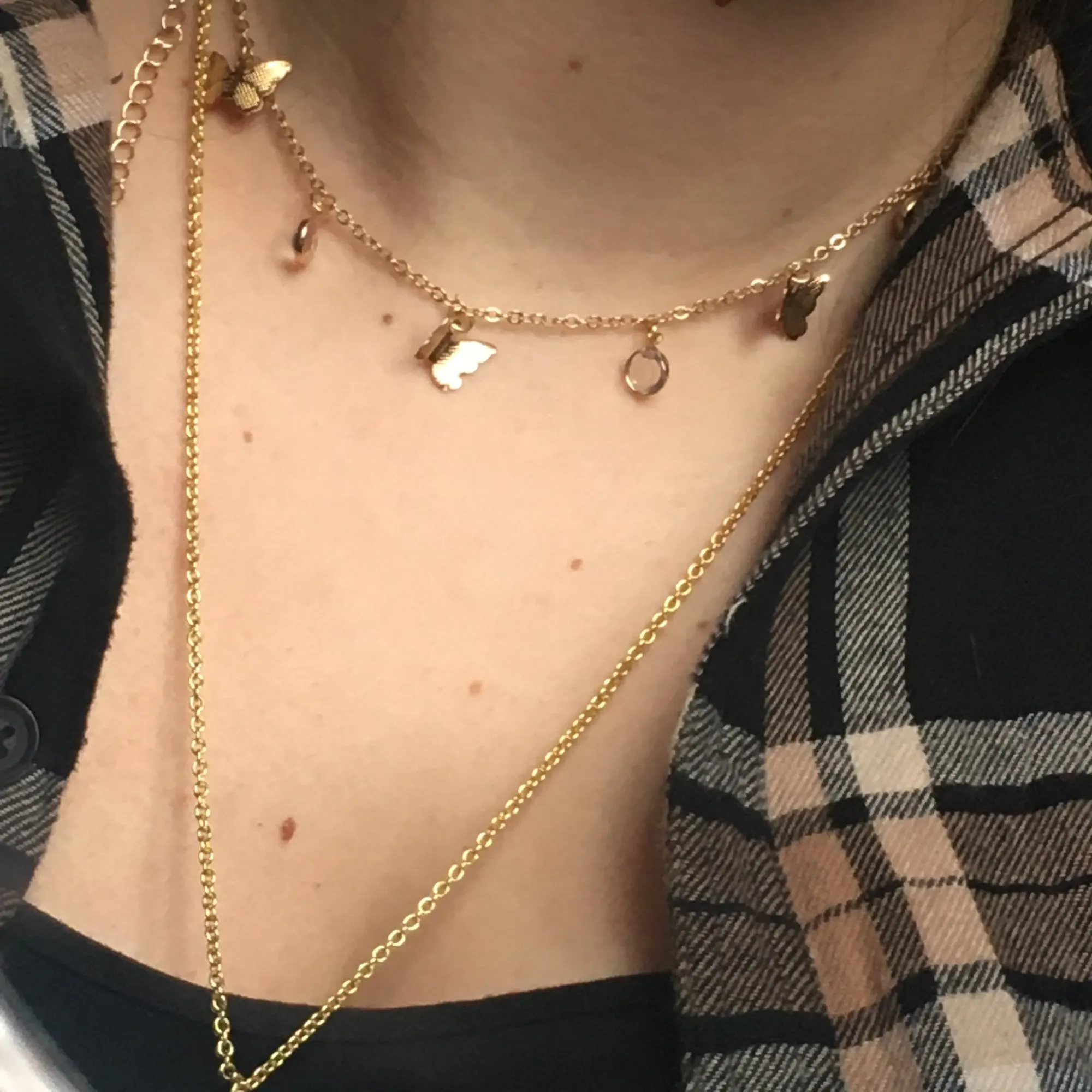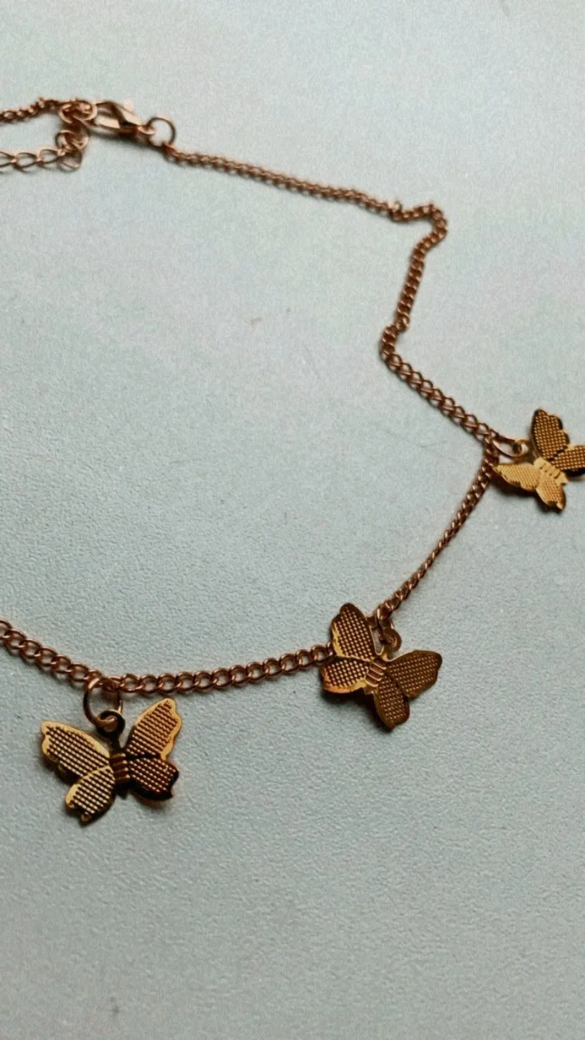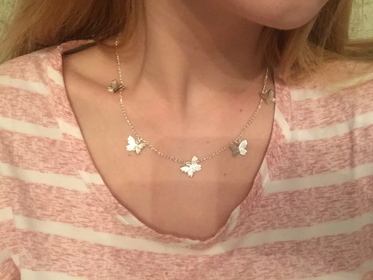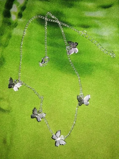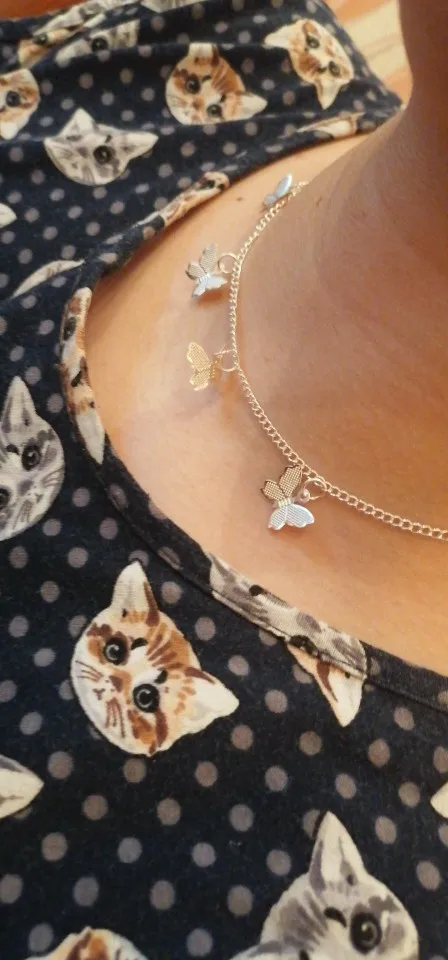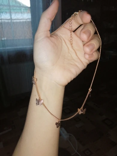 Милая цепочка Плюсы: - Есть запас длины - Бабочки аккуратные и красивые - Выглядит как на фото Минусы: - Немного сползает вниз, но это не особо критично для меня Годная штука за свои деньги, можете брать
