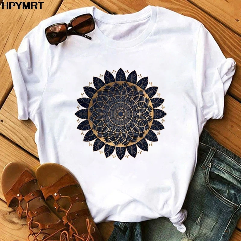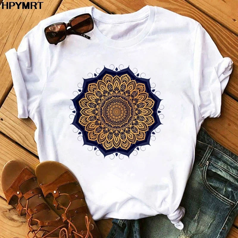 Женская Повседневная футболка с принтом мандалы, свободная эластичная футболка с коротким рукавом и растягивающейся эстетикой, новинка 2020