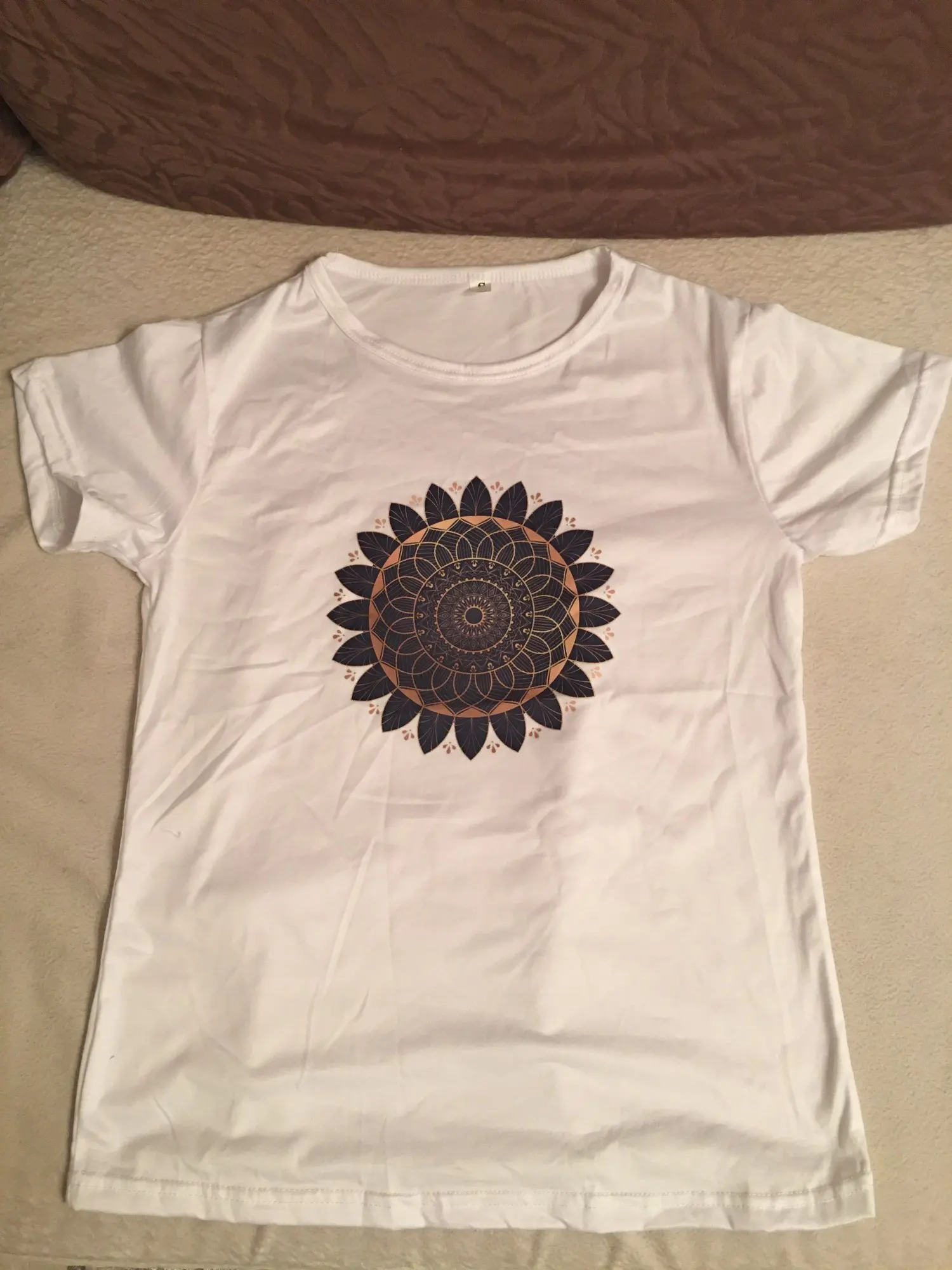 размер не соответствует ,маломерит, рисунок не идеально по середине, и не такой по размерам как на картинке, на изделии он меньше и оттенок цвета более фиолетовый на картинке синий. в целом товаром не доаольна , в живую не купила бы.