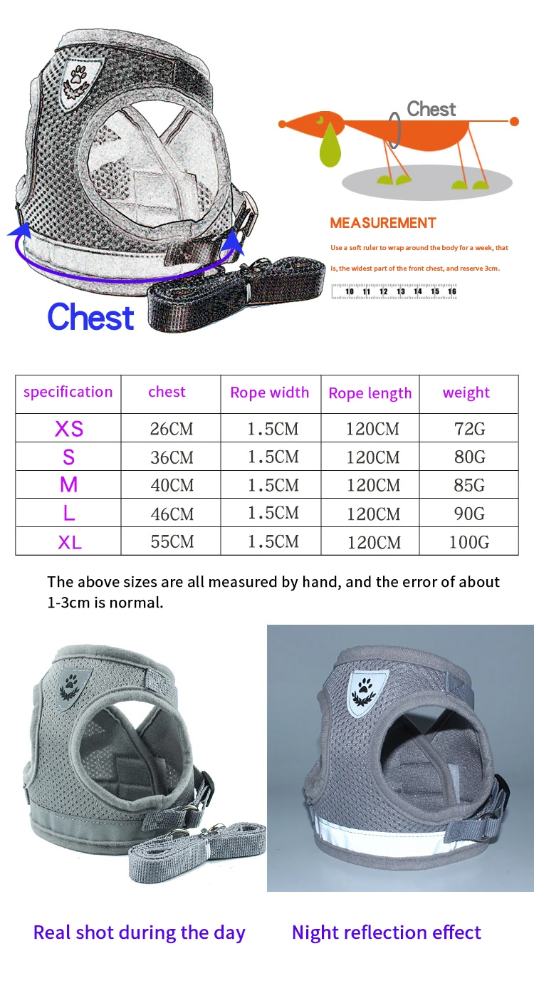 Светоотражающая шлейка для собак, Воздухопроницаемый регулируемый поводок из сетчатого материала, нагрудный ремень для щенков, товары для прогулок и домашних животных
