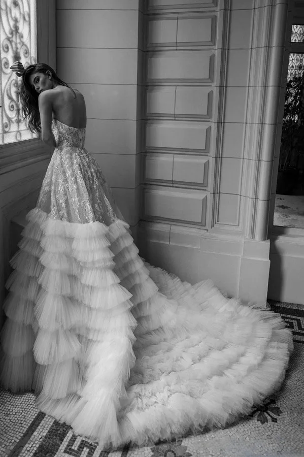 Великолепное пышное свадебное платье с длинным шлейфом, кружевное многослойное фатиновое формальное платье для горячая Распродажа, 2020