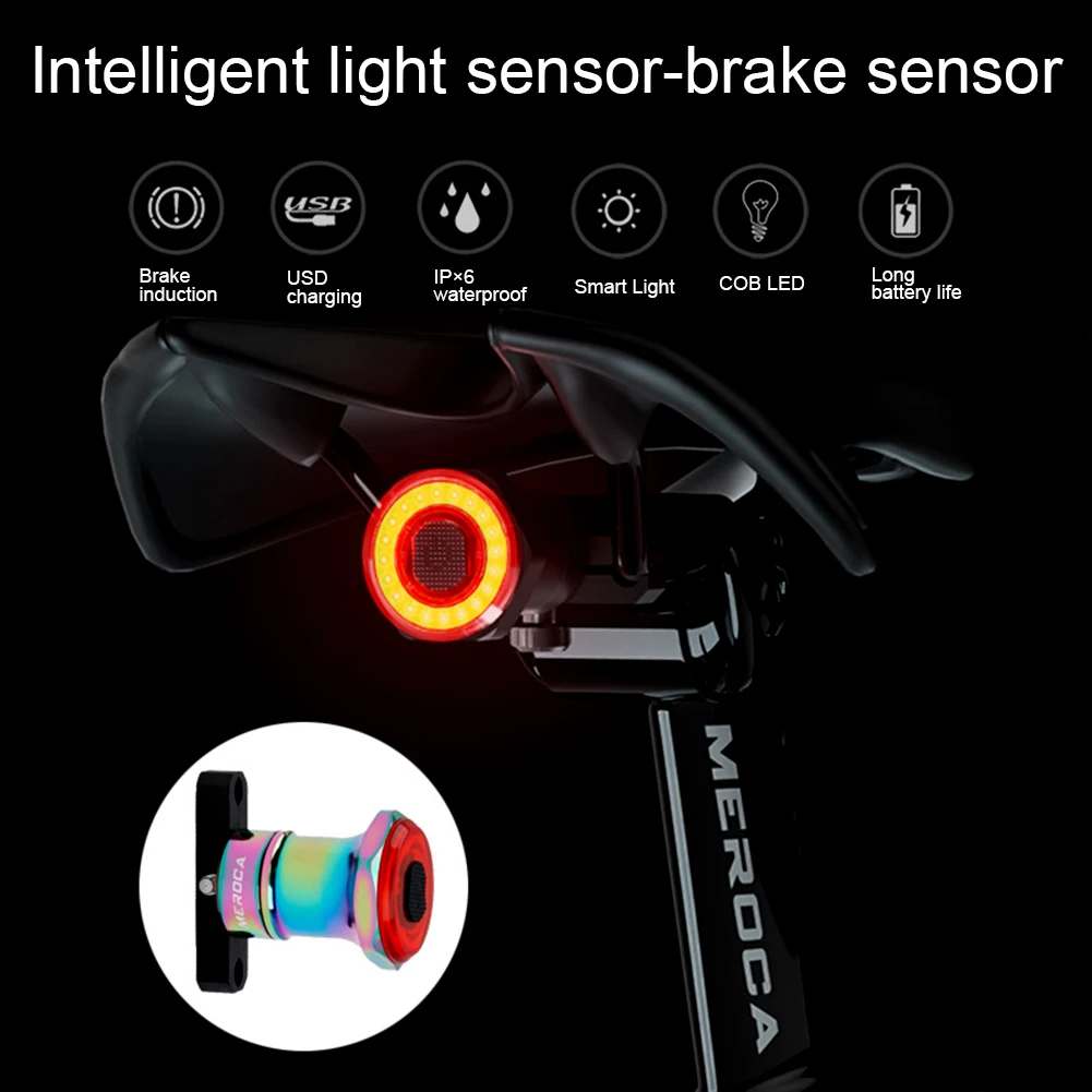 Умный задний фонарь для велосипеда, светодиодный задний фонарь с датчиком торможения и автозапуска, влагосветильник IPX6, Аксессуары для велосипеда