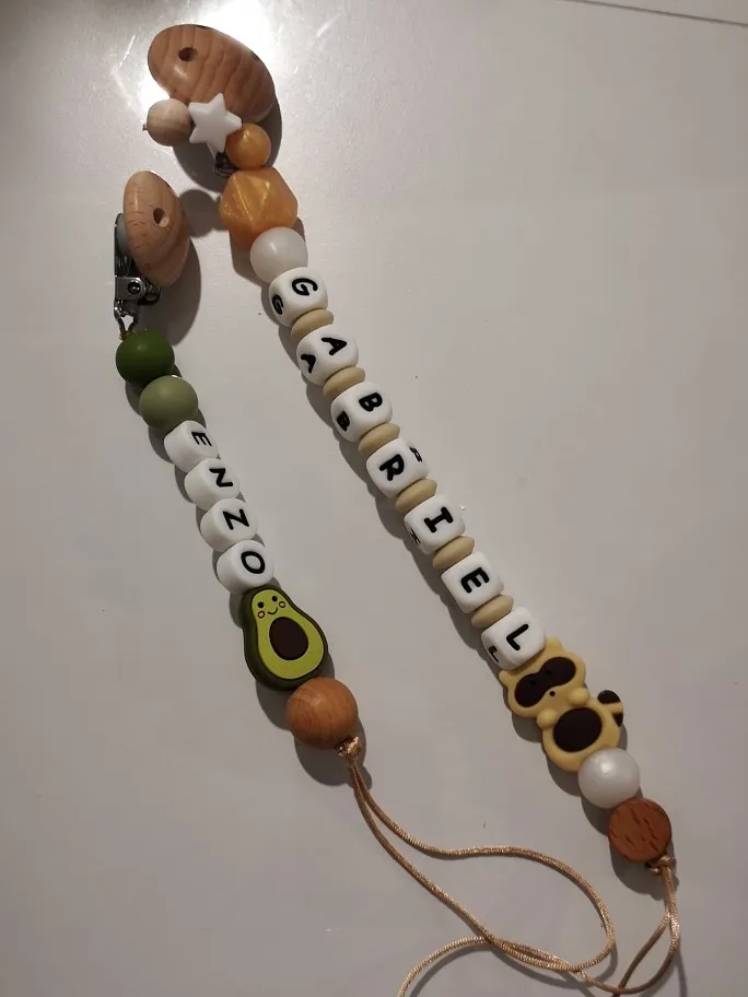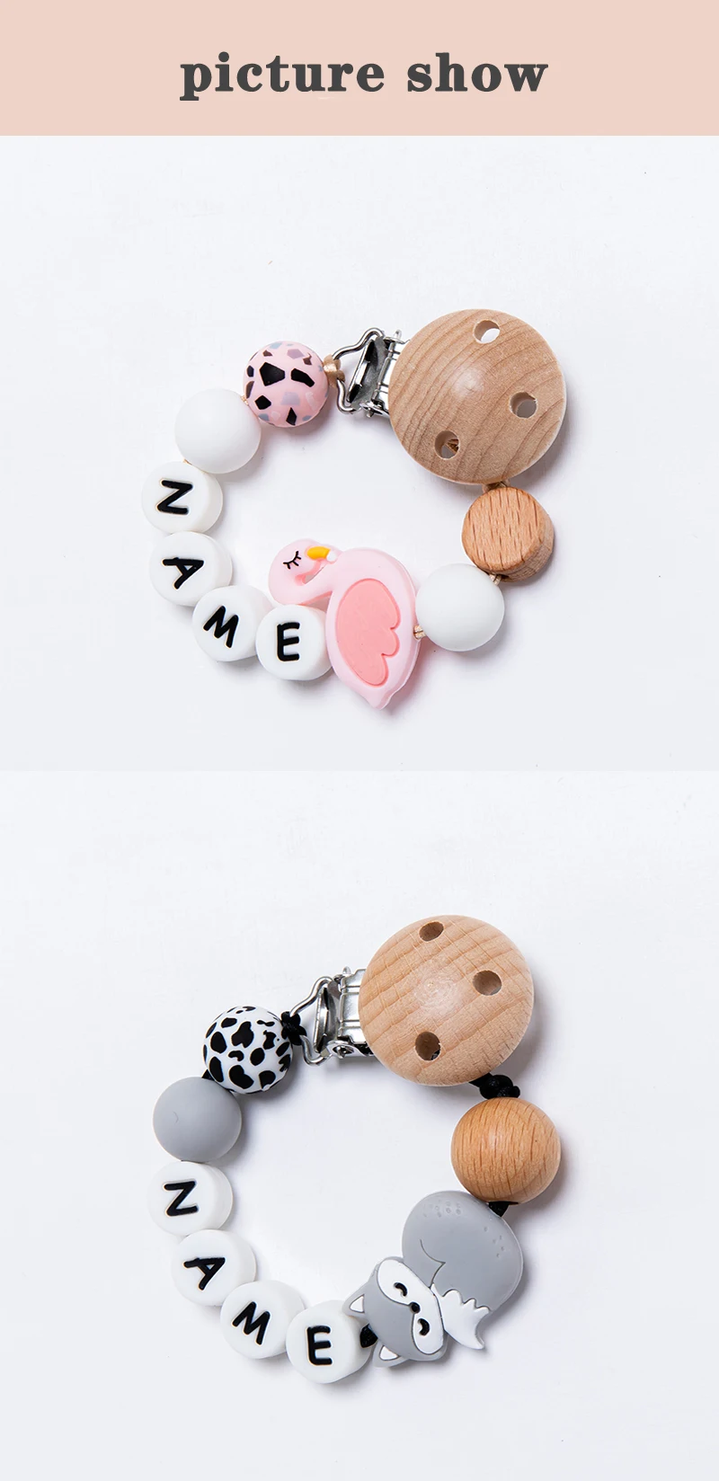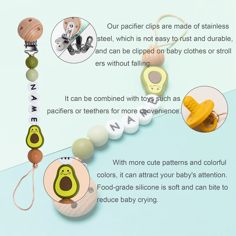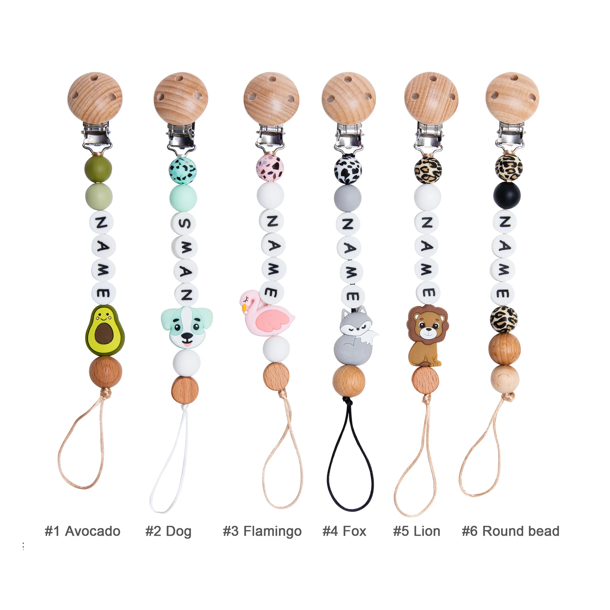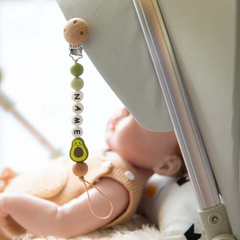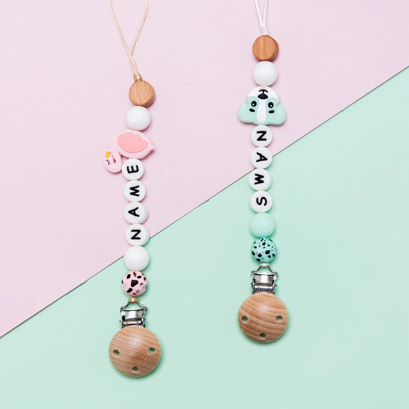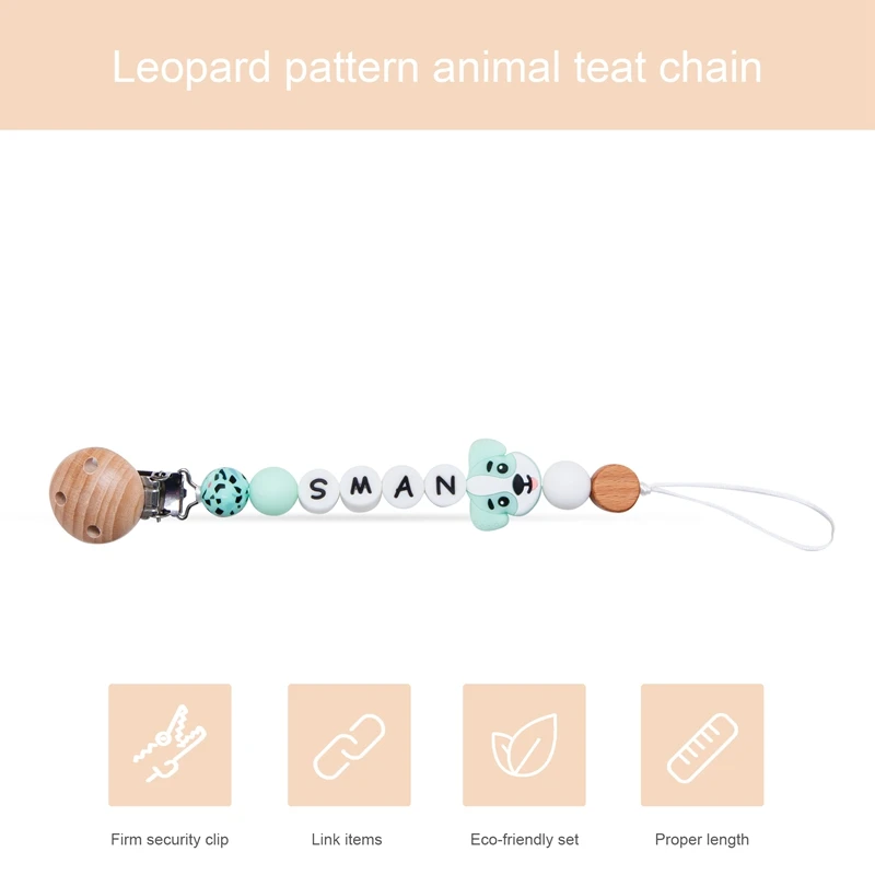 1 шт., детская цепочка для пустышек, персонализированные леопардовые бусины, деревянный зажим, держатель для прорезывателя с мультяшными животными, цепочка для грызунов, детский прорезыватель, не содержит БФА