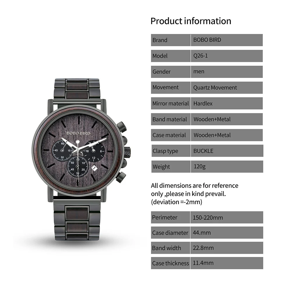 Часы мужские деревянные кварцевые с хронографом в деревянной подарочной коробке