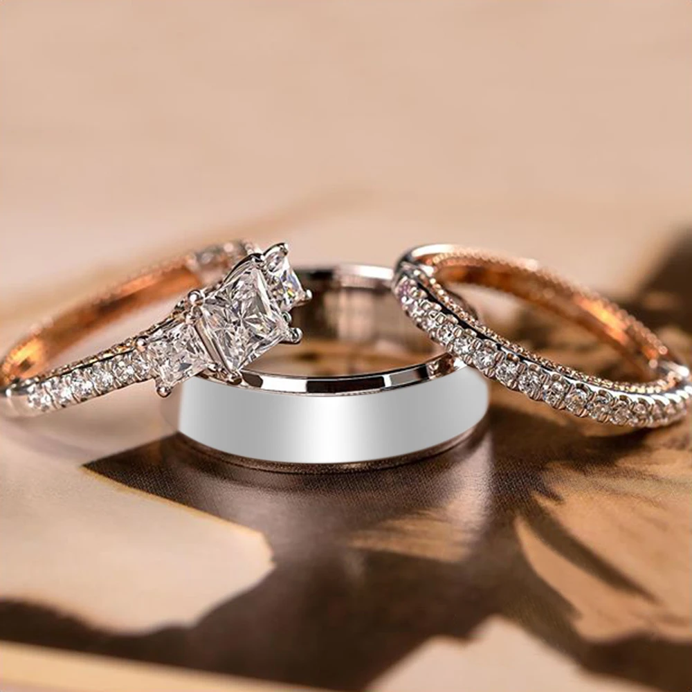 Huitan шикарный свадебный комплект ювелирных изделий 3 шт. Кольца Два Тона Блестящий кубический цирконий камень геометрический Форма высокое качество женские кольца
