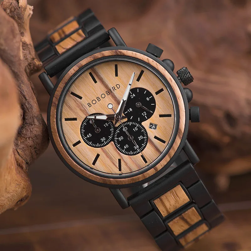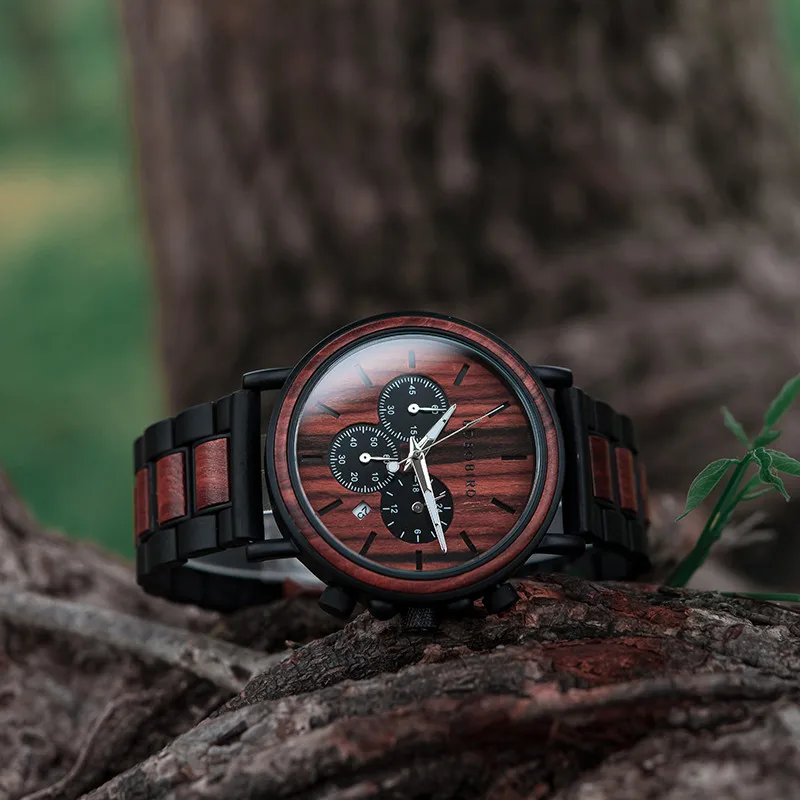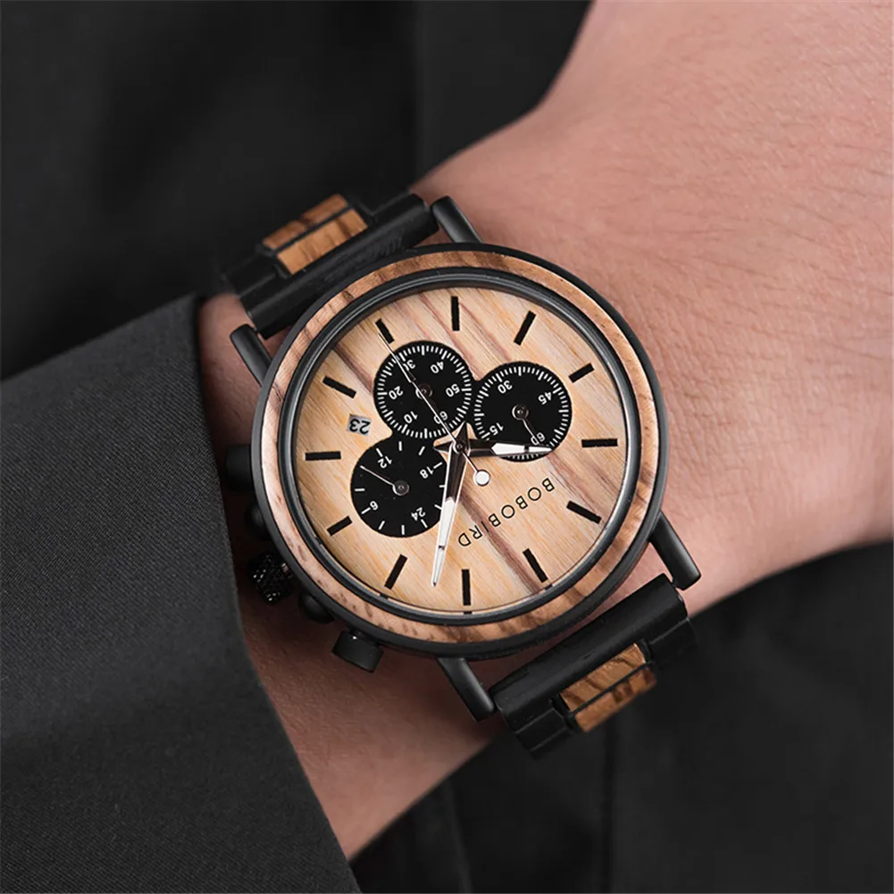Часы мужские деревянные, с хронографом, с автоматической индикацией даты