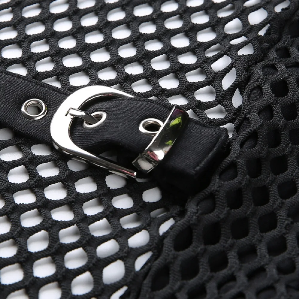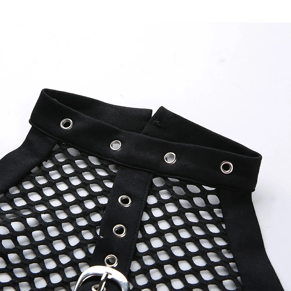 Сексуальный женский Готический сетчатый камзол Клубная одежда прозрачный металлический ремешок в стиле панк укороченный топ