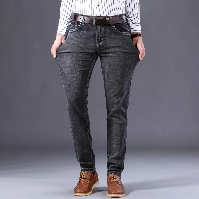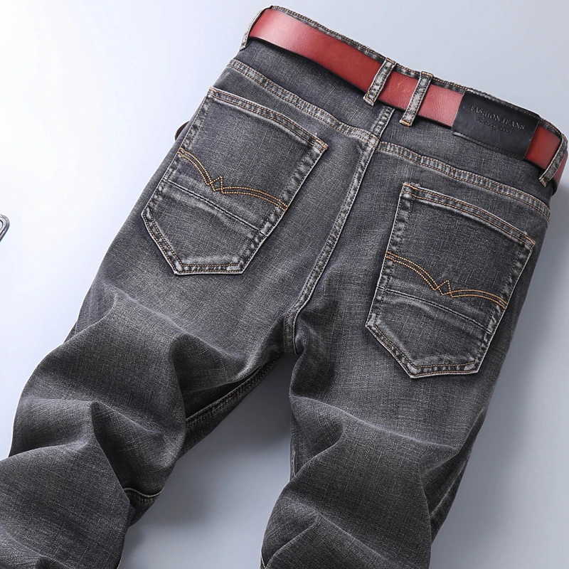 Мужские джинсы стрейч, серые, черные, синие, классический стиль, 2021