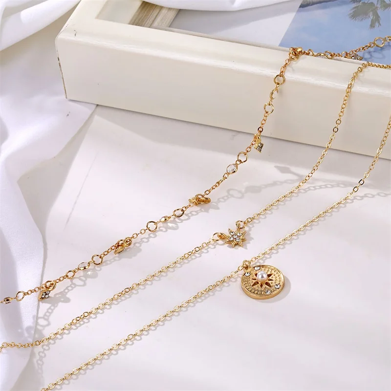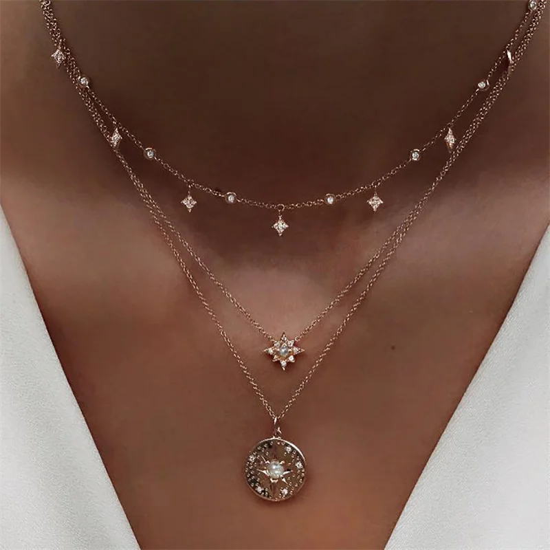 Женское винтажное ожерелье с кристаллами и звездами, многослойное золотое ожерелье с длинные ожерелья с подвесками, 2020, ювелирные изделия в стиле бохо
