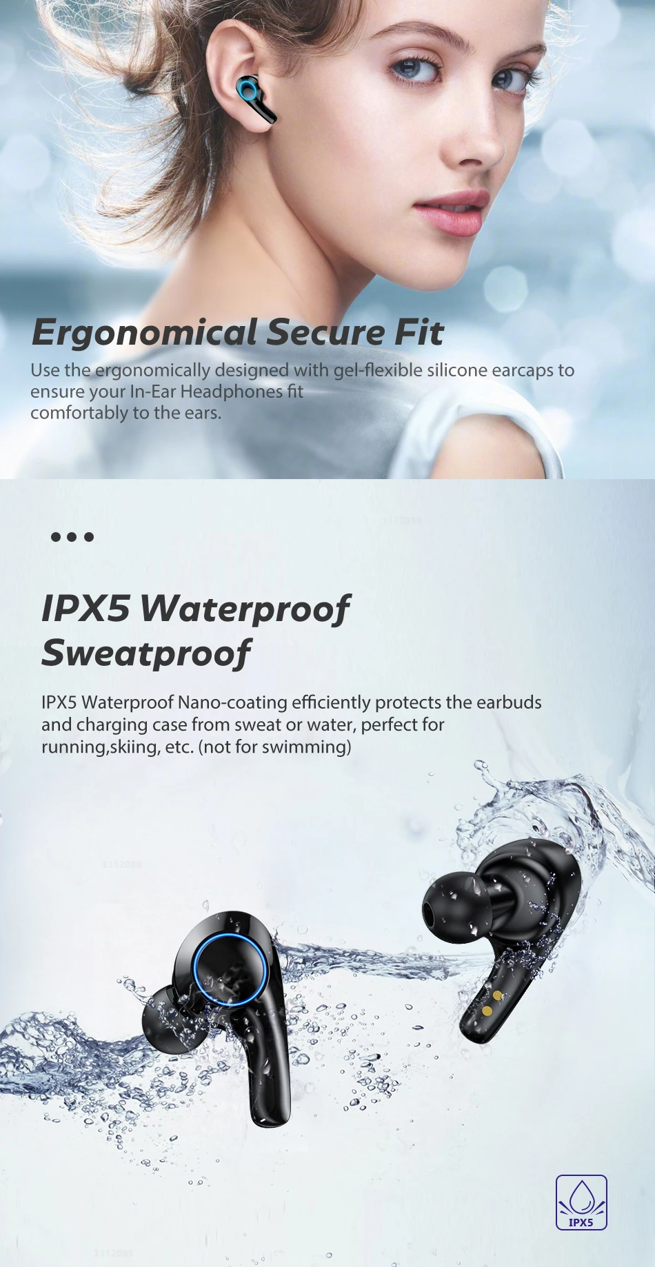 Беспроводные наушники с микрофоном, Bluetooth наушники с сенсорным управлением, водонепроницаемые спортивные наушники, шумоподавление, 9D стерео наушники