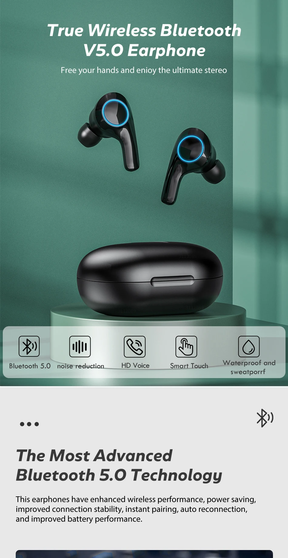 TWS беспроводные Bluetooth наушники с сенсорным управлением, Blueto...