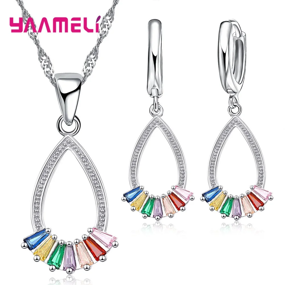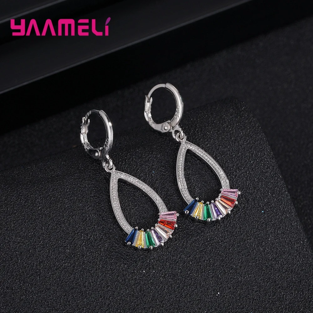 Сверкающие Красочные серьги-кольца из серебра 925 пробы с фианитами
