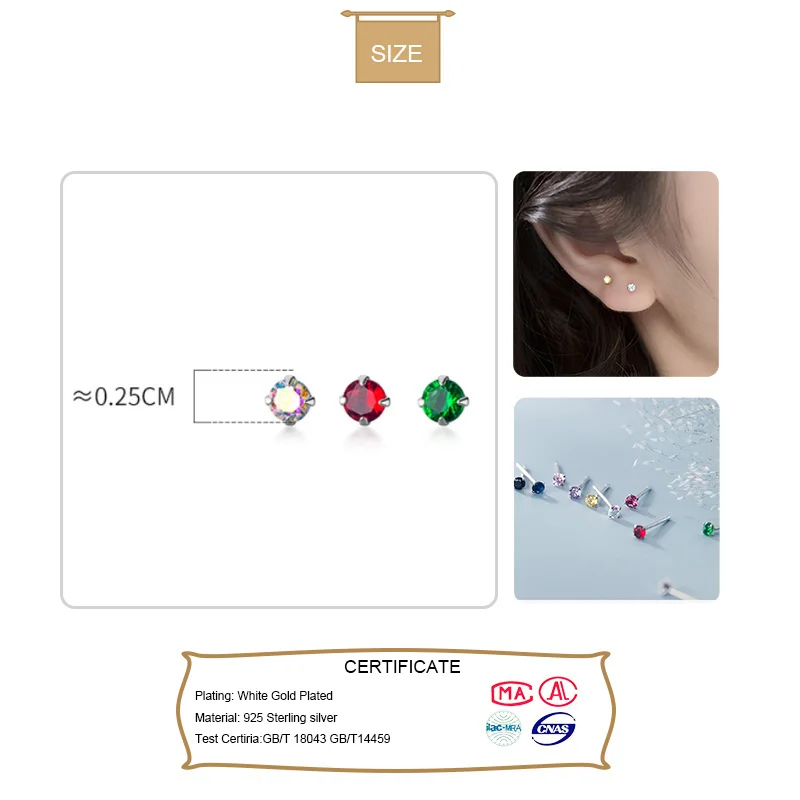 TrustDavis, серебро 925 пробы, 1 шт., циркониевая игла для ушей-зве...