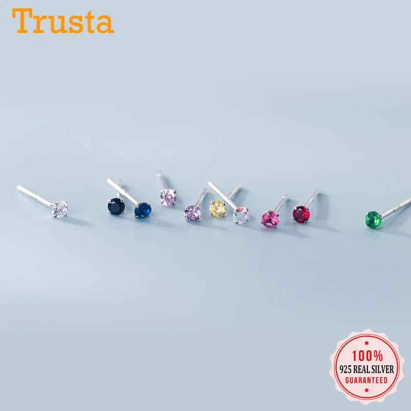 Серьги-гвоздики Trusta из стерлингового серебра 100% пробы с имметр...