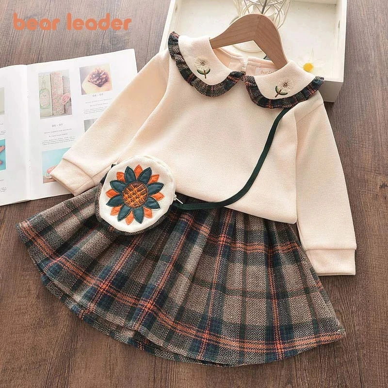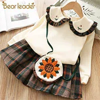 Bear Leaderнаборы для цветов для девочек, коллекция 2022 года, зимняя детская одежда с цветочным рисунком Одежда для девочек с длинными рукавами трикотажный комплект из 2 предметов, элегантные костюмы для детей возрастом от 3 до 7 лет