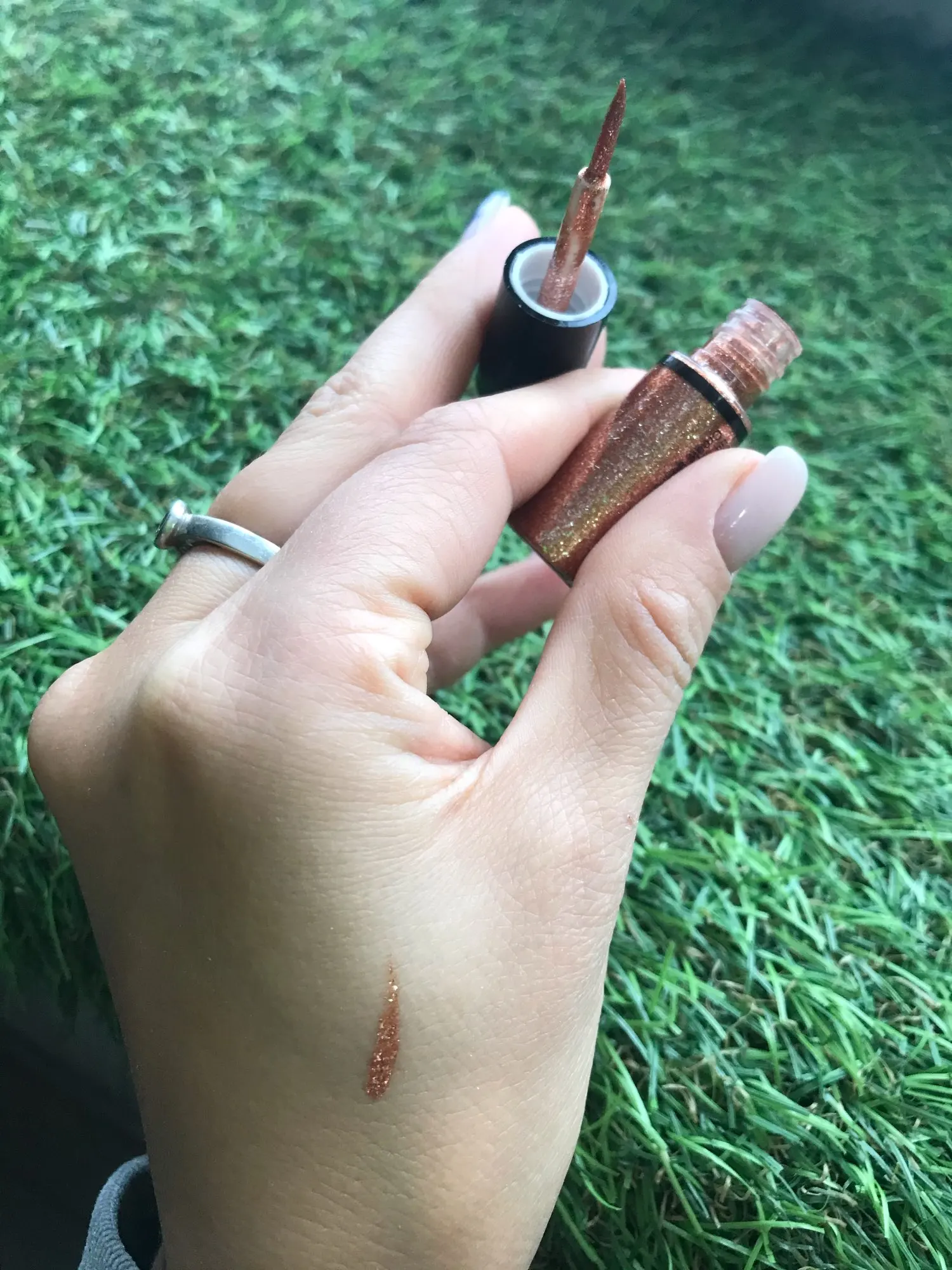 Спасибо большое за блескучую подводку. Очень маленький флакончик, но их(жидких блёсток) достаточно (хотя 50 рублей за такую малявку дороговато). В основном наношу на нижнее веко или в уголок глаза - выклядит симпотично. Блёстки красиво переливаются на свету и служат отличной изюминкой к образу.