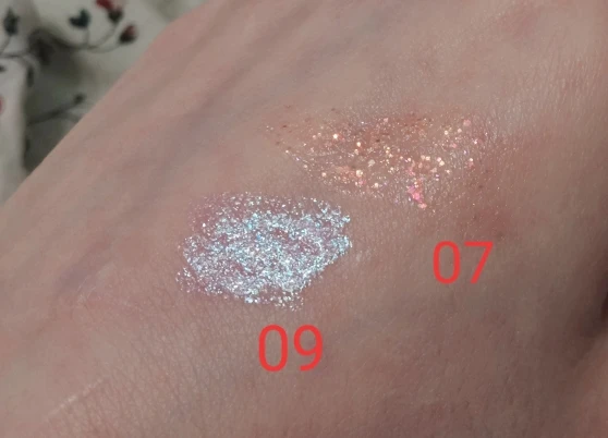я думала, будет серебро, а оказался прозрачный с фиолетовыми блестками. не засыхает, плешивит. короче будто блёстки с водой на глаз наносите. хотела ей рисовать стрелки, но чота как-то не