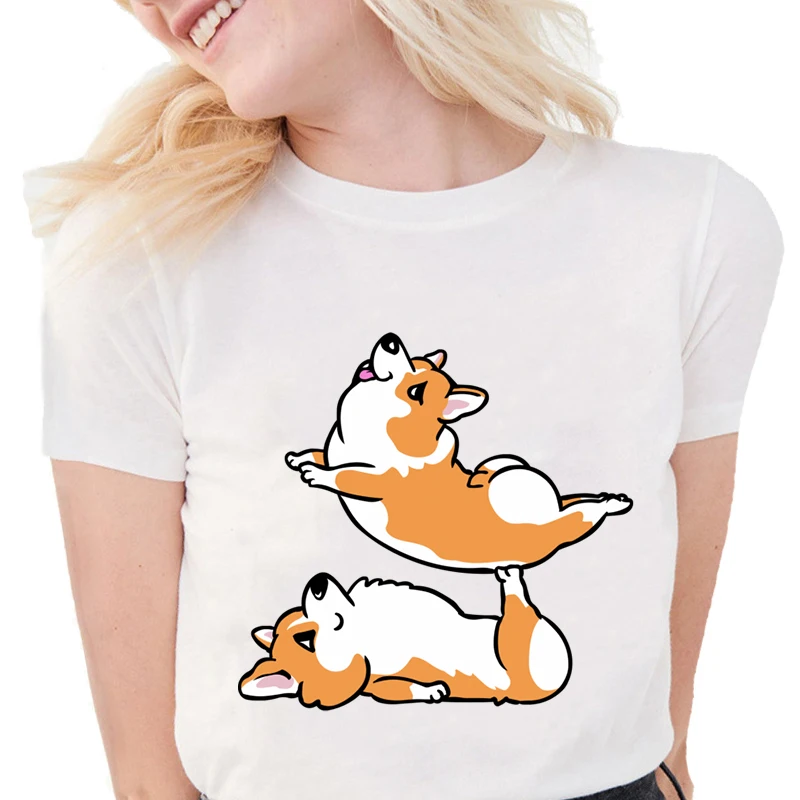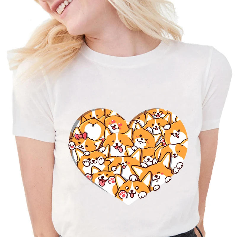 Женская футболка с принтом корги и собаки, топы для женщин 2020, Забавные футболки с принтом кавайных собак, Hauts Femme Vetement 90s Ulzzang Harajuku, Белый Топ