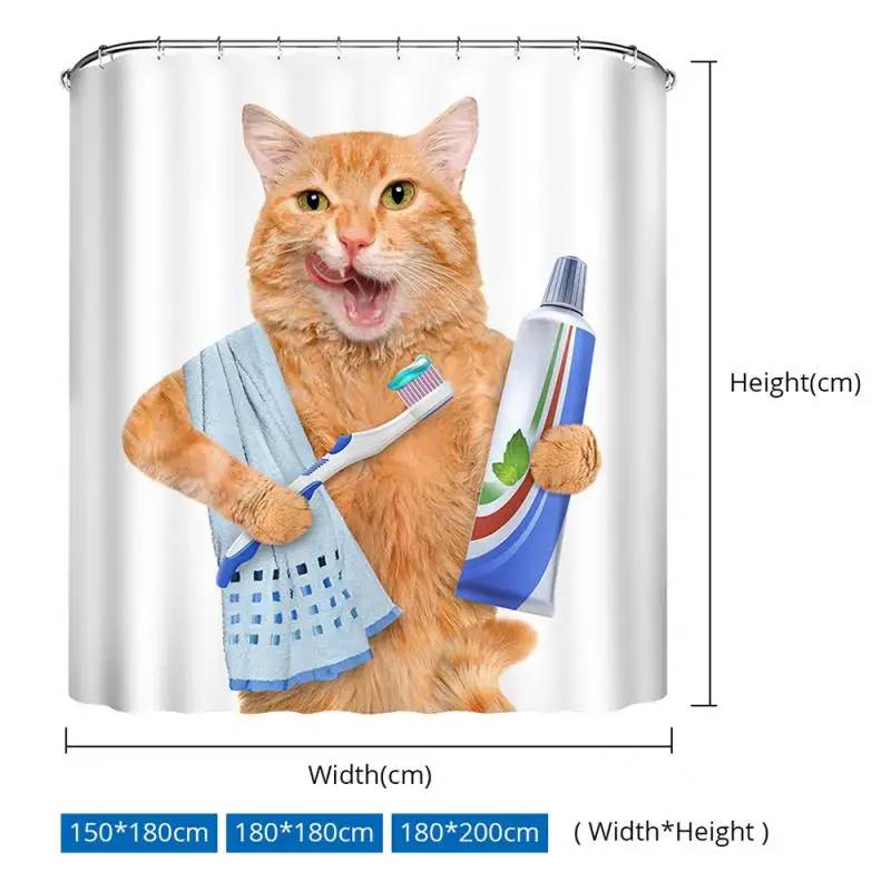 Занавеска для душа с принтом милого кота, водонепроницаемая шторка из полиэстера, занавеска для ванной комнаты