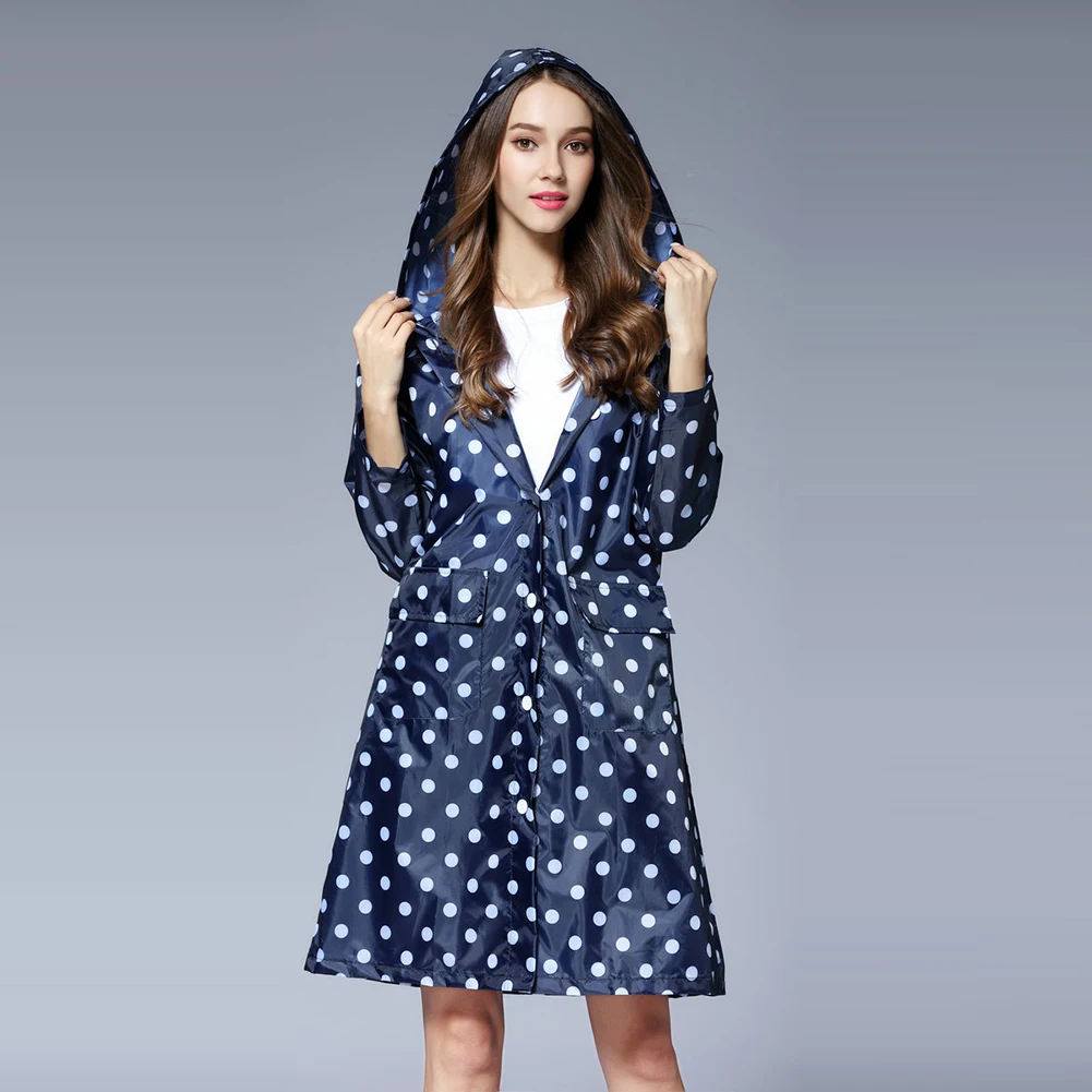 Дождевик женский длинный, Модный милый дождевик в горошек, дождевик, пончо, водонепроницаемая одежда от дождя, толстовки, пончо, уличное пальто, куртка