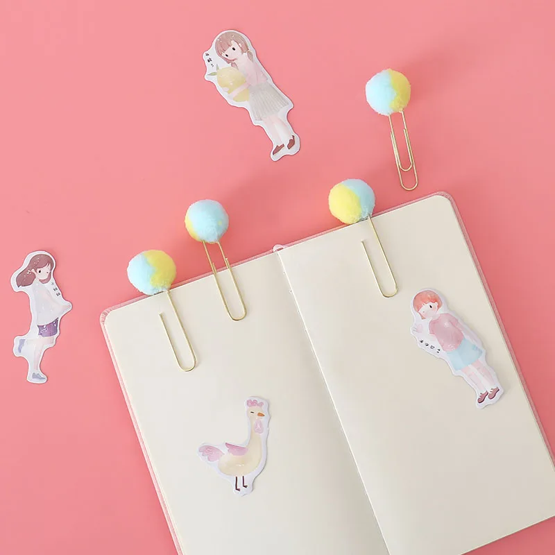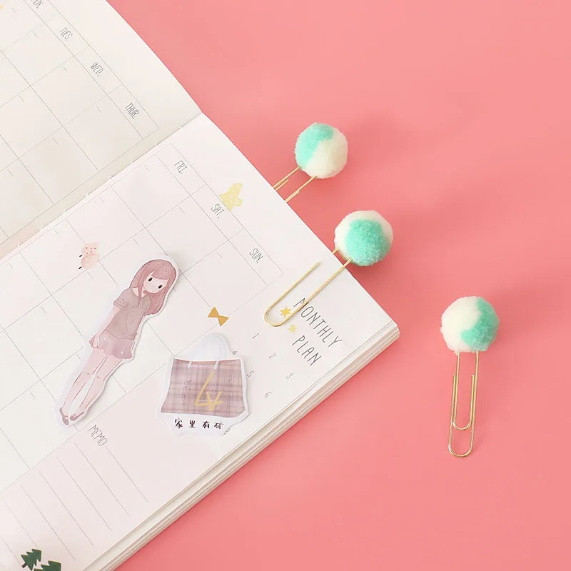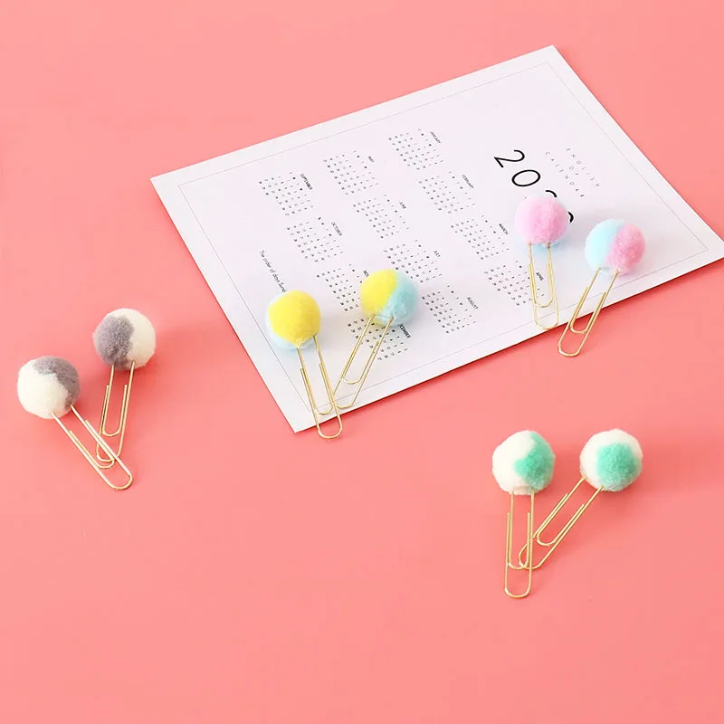 Пачка 10 шт.лот милый плюшевый двойной цветной шар скрепки металлические закладки скрепки планировщик зажим H0479