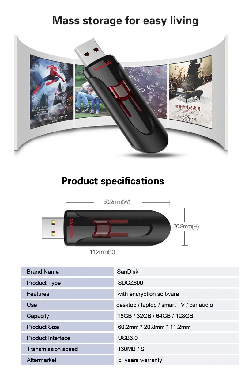Флеш-накопитель SanDisk Cruzer Glide CZ600, USB 128, 16 ГБ, 32 ГБ, 64 ГБ, 256 ГБ, 3,0 Гб
