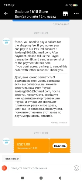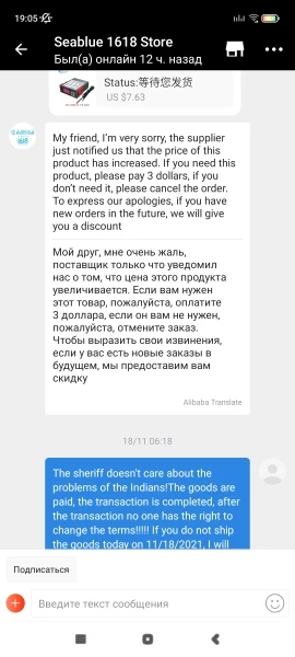 пять звёзд только чтобы довести до покупателей! после оплаты барыга заявил что товар подорожал и нужно доплатить, требовал отменить заказ, потом якобы отправил, дал липовый трек номер и потом отменил заказ и молчит , пришлось открыть спор!