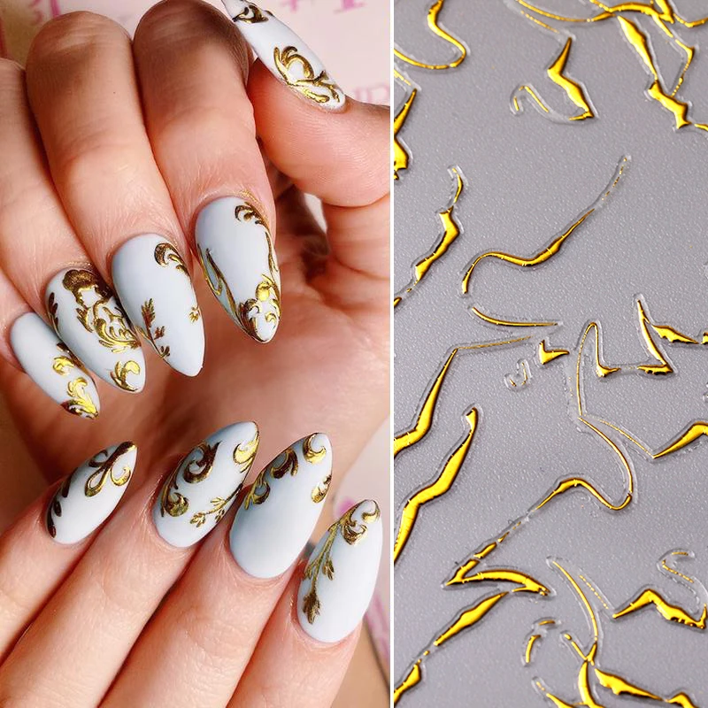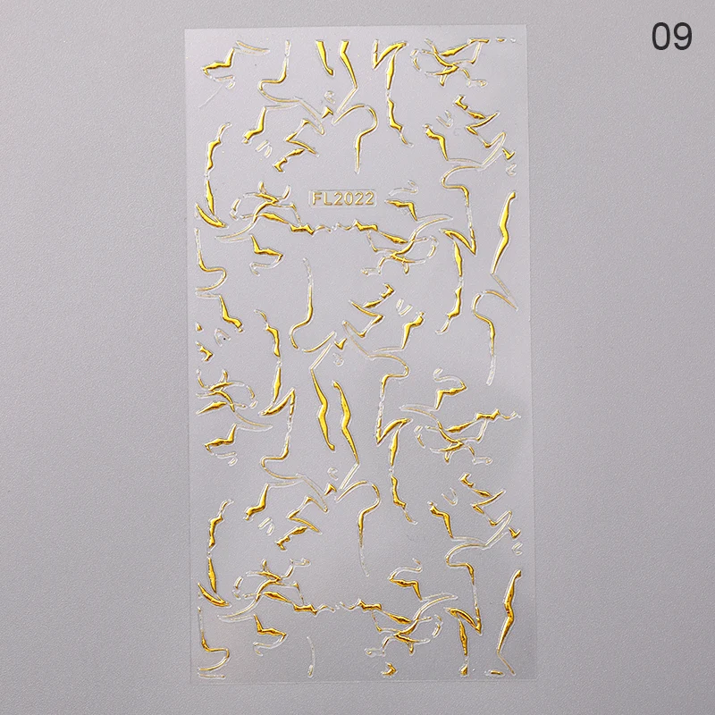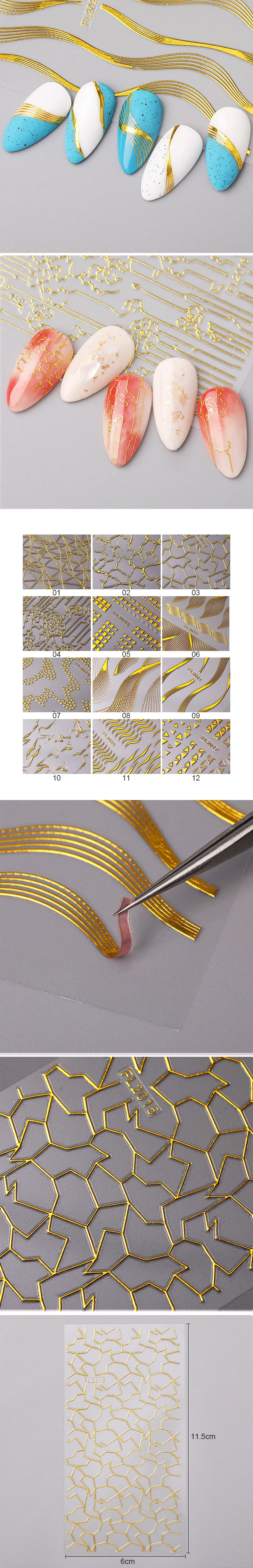 Золотой Серебряный ноготь наклейка для ногтей 3D, с цветочным принтом