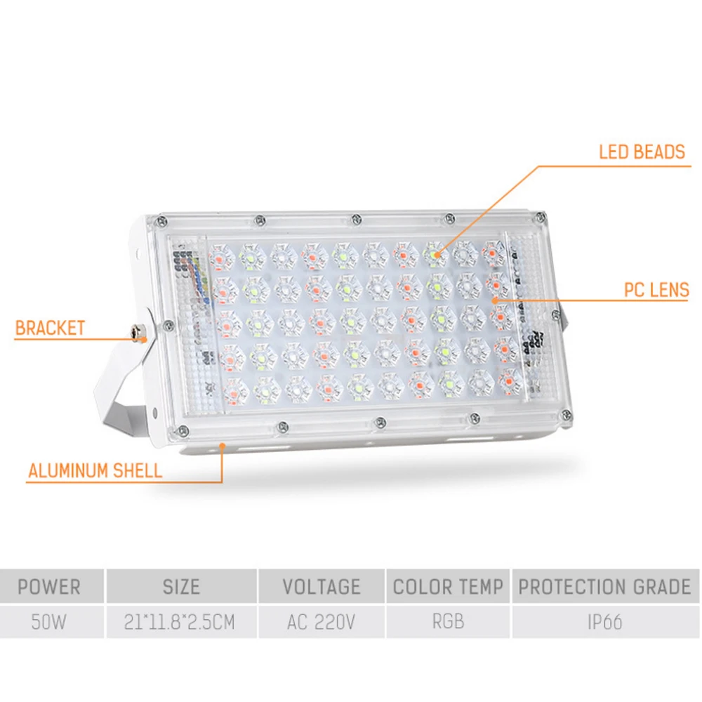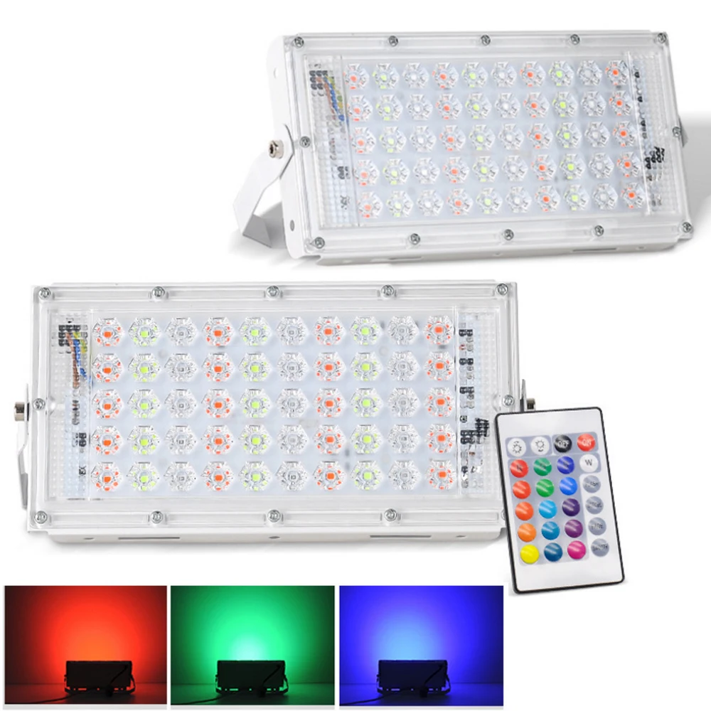 Светодиодный прожектор 50 Вт RGB, светодиодный прожектор COB, светодиодный уличный фонарь переменного тока 220 В, водонепроницаемый уличсветильник ильник IP65 с дистанционным управлением