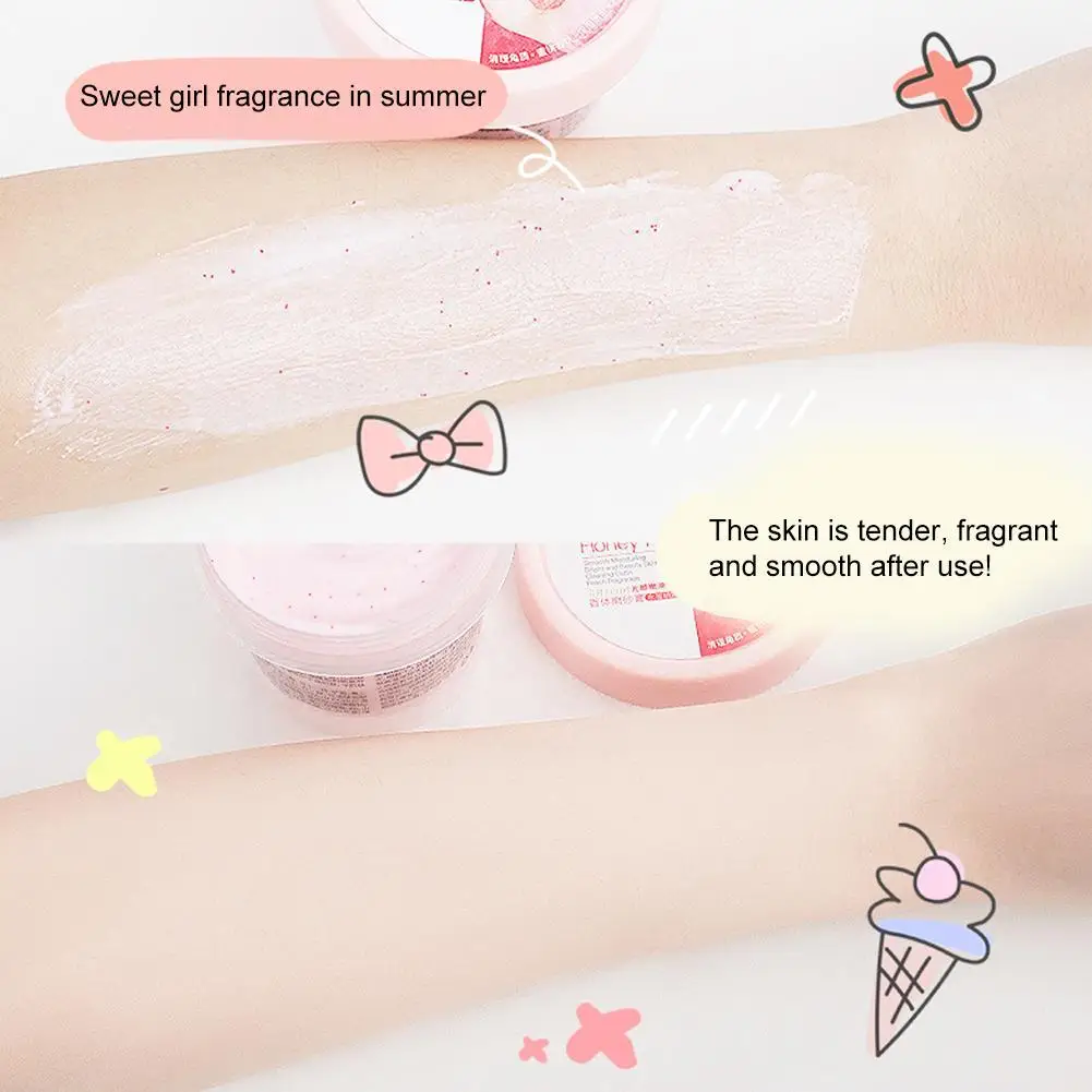 1. После увлажнения тела, Возьмите соответствующее количество скраба и используйте круговое движение, чтобы мягко смягчить кожу