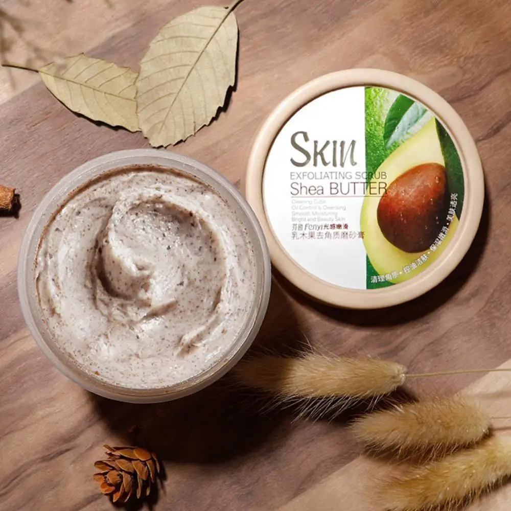 100 мл скраб для тела масло ши, Отшелушивающий гель для губ, глубокое очищение лица отбеливания света гладки осветление лечения поры, акне авокадо