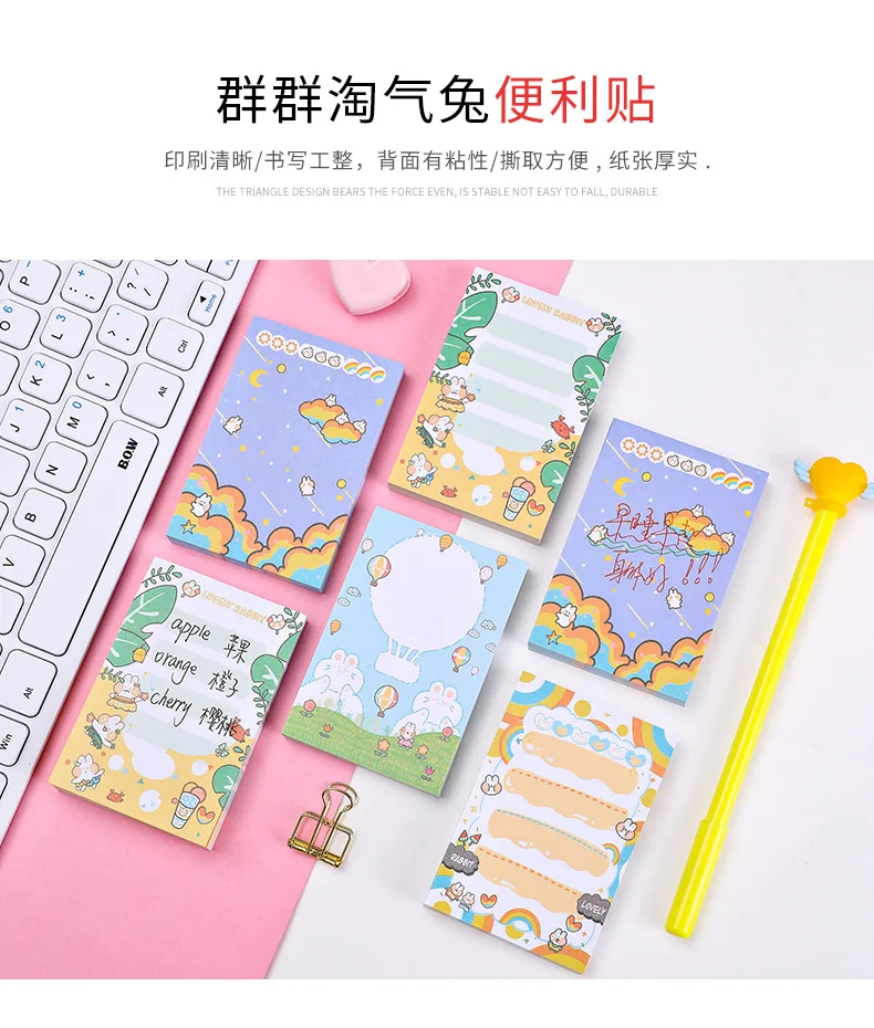: Mohamm 100Pcs Naughty серия кролик; Бумаги для заметок на клейкой основе съемные креативные Скрапбукинг канцелярские товары для школы поставки
