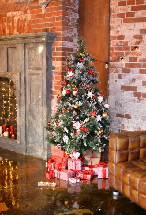 Laeacco Рождественские елки камин светильник лые деревянные доски трояна Свеча фотография фоны для фотостудии