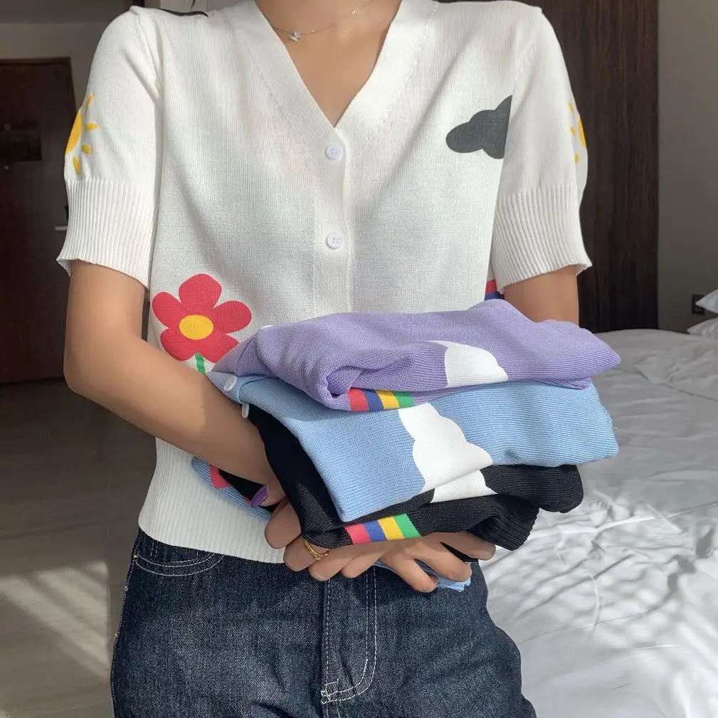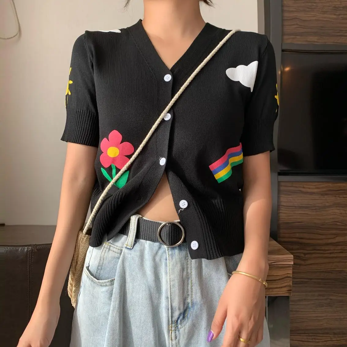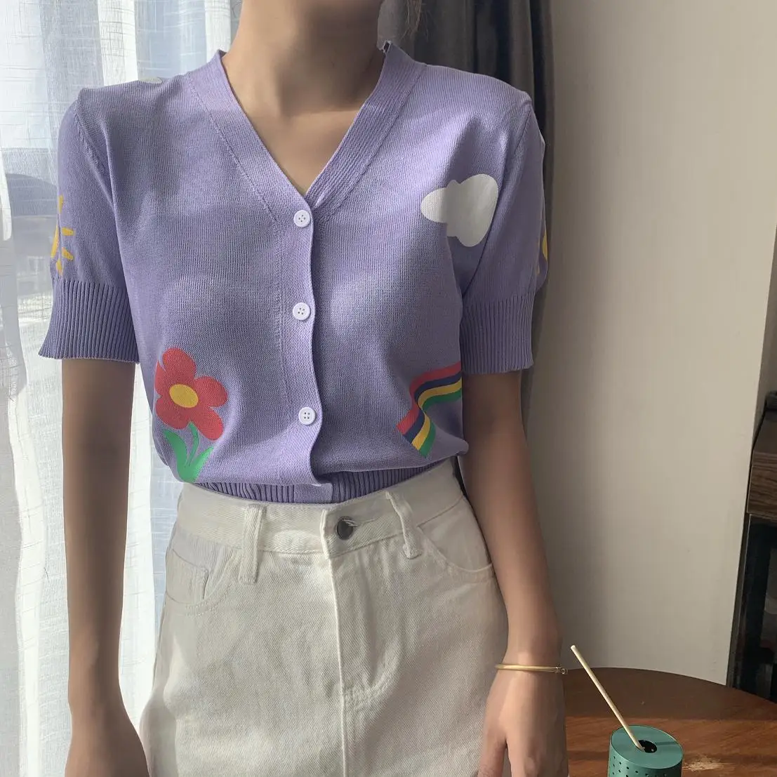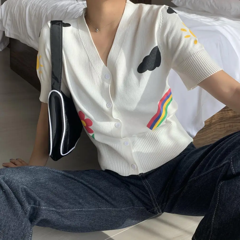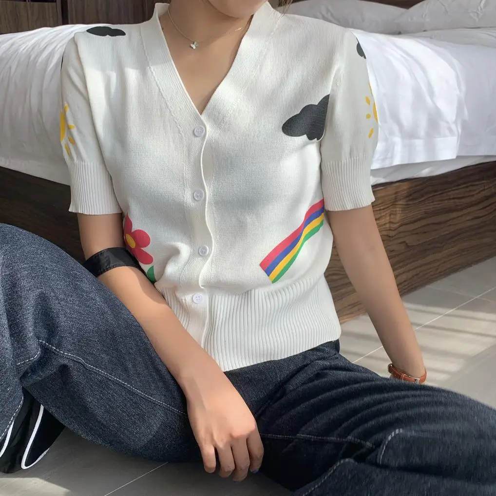 Кардиган женский трикотажный, с V-образным вырезом и коротким рукавом