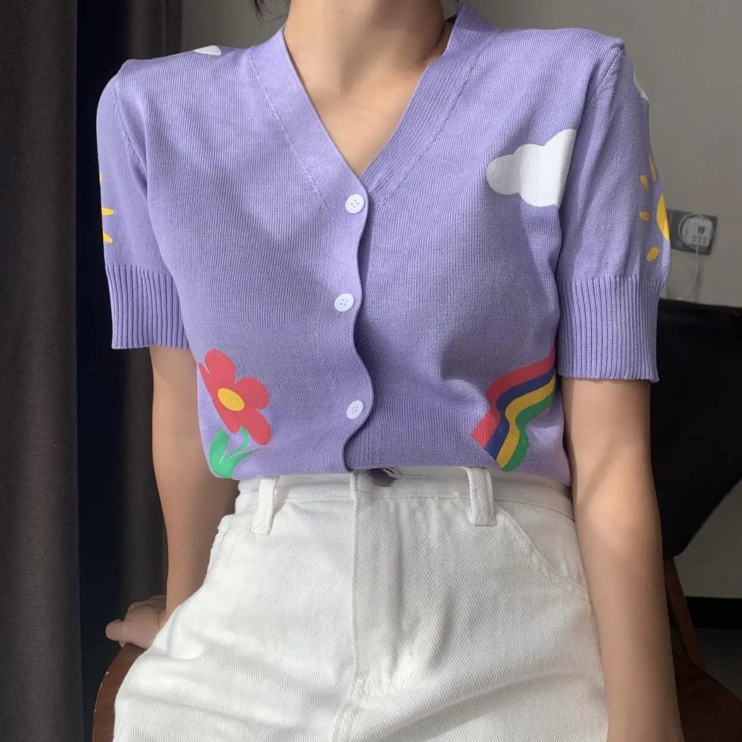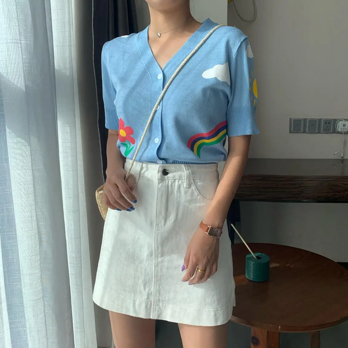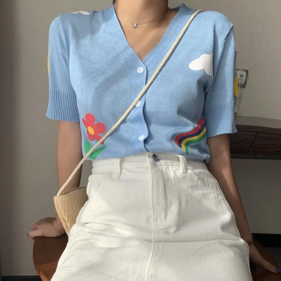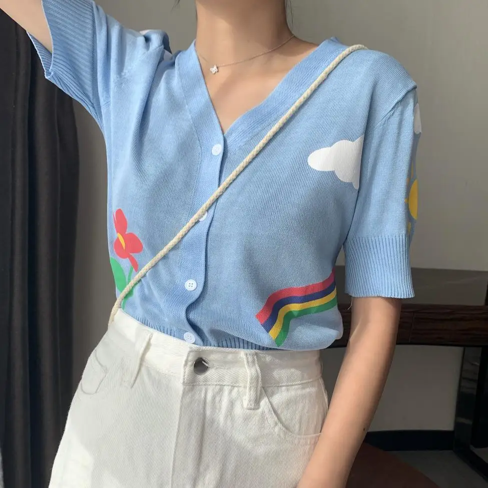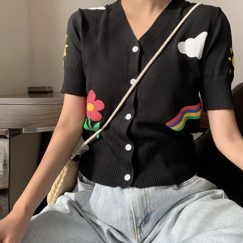 Кардиган женский трикотажный, с V-образным вырезом и коротким рукавом